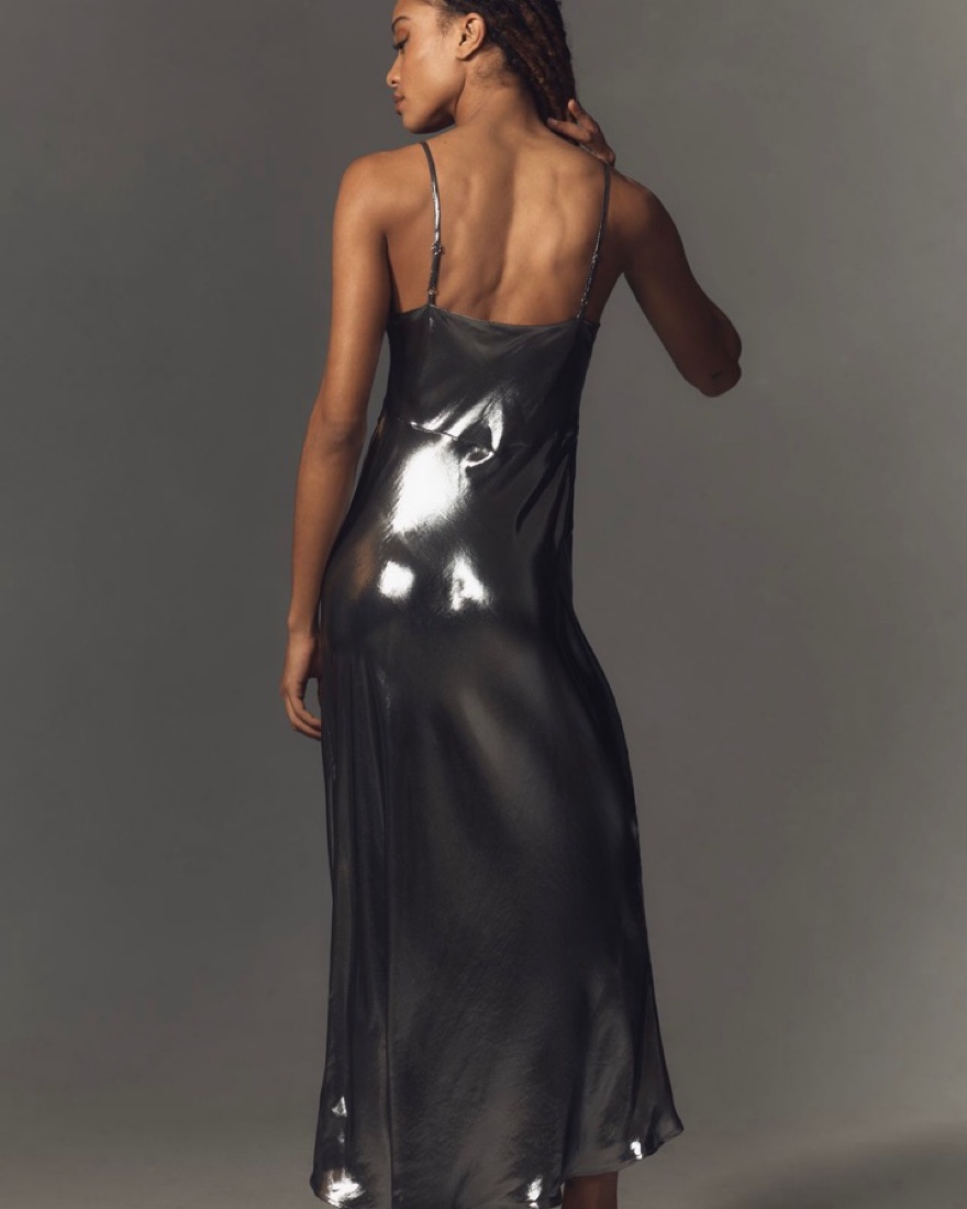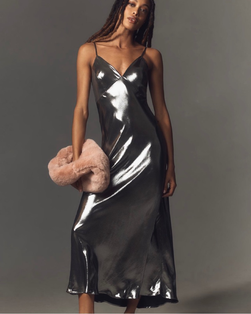 Anthropologie Silver Midi Dress by Anthropologie - Pickle