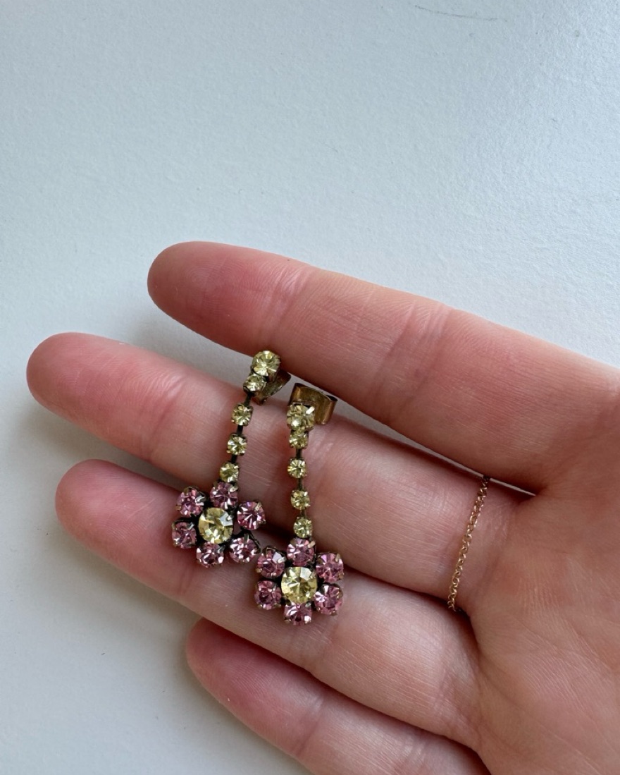 Roxanne Assoulin pansy crystael earrings - pink/green drop