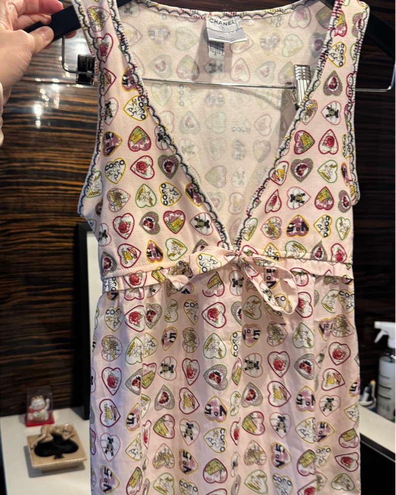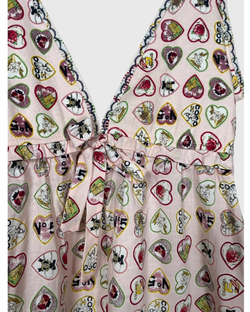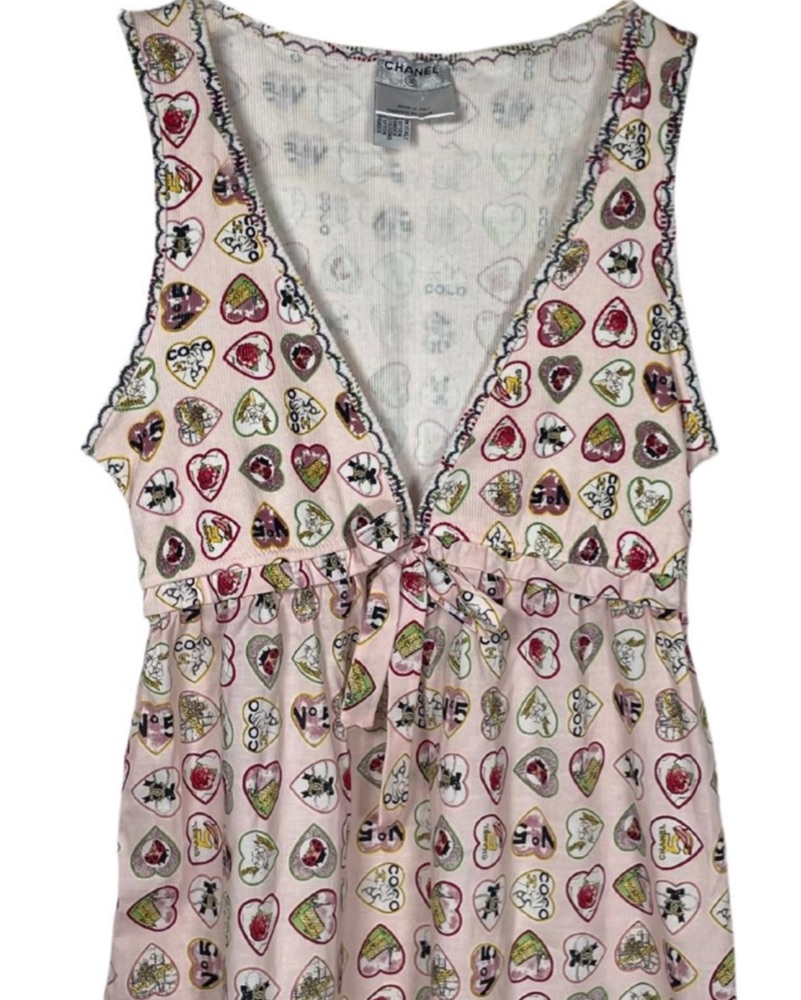 Super rare Chanel SS2006 archive light pink valentine’s print cotton top. In very good condition. Features a flattering V-neck and tie detail. CHANEL Top