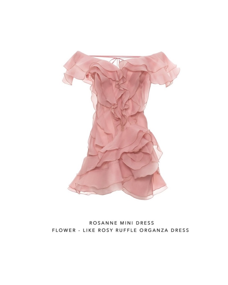 Rosanne Mini Dress - Flower-Like Rosy Ruffle Organza Dress
