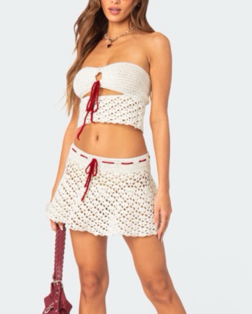 Red & white croshet set. So cute as a cover up!! NWT never worn