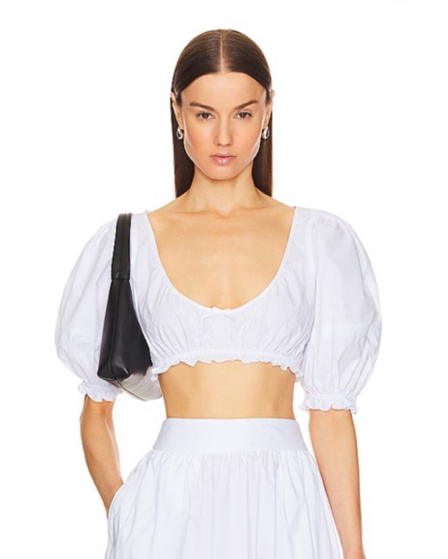Helsa Poplin Cropped Peasant Top White by Helsa - Pickle