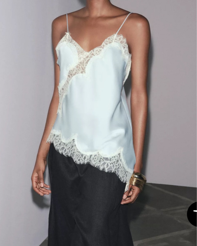This luxurious satin camisole exudes a romantic, feminine allure with its delicate lace trim. Versatile enough to be dressed up or down, it's perfect for a special occasion or an evening out.