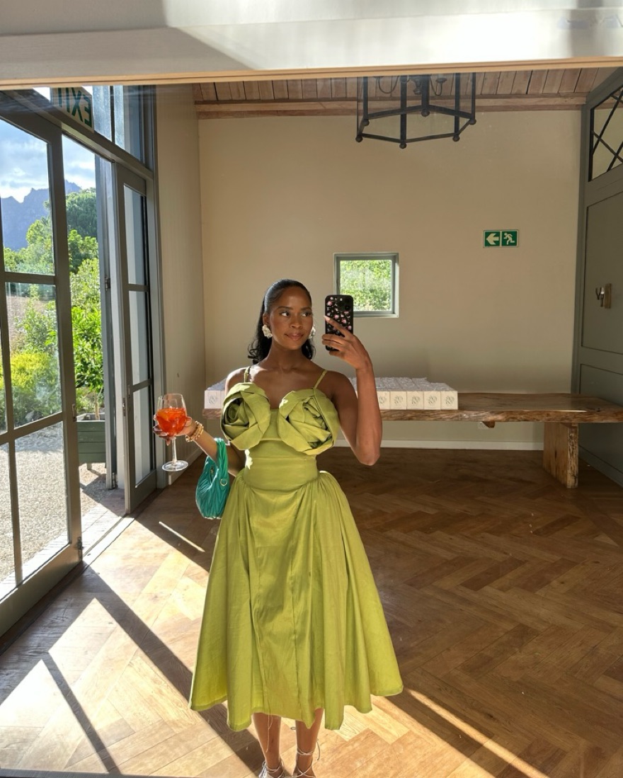 Obsessed with her! Wore to a wedding and got so many compliments. Size Small fits a 4-8 (adjustable).