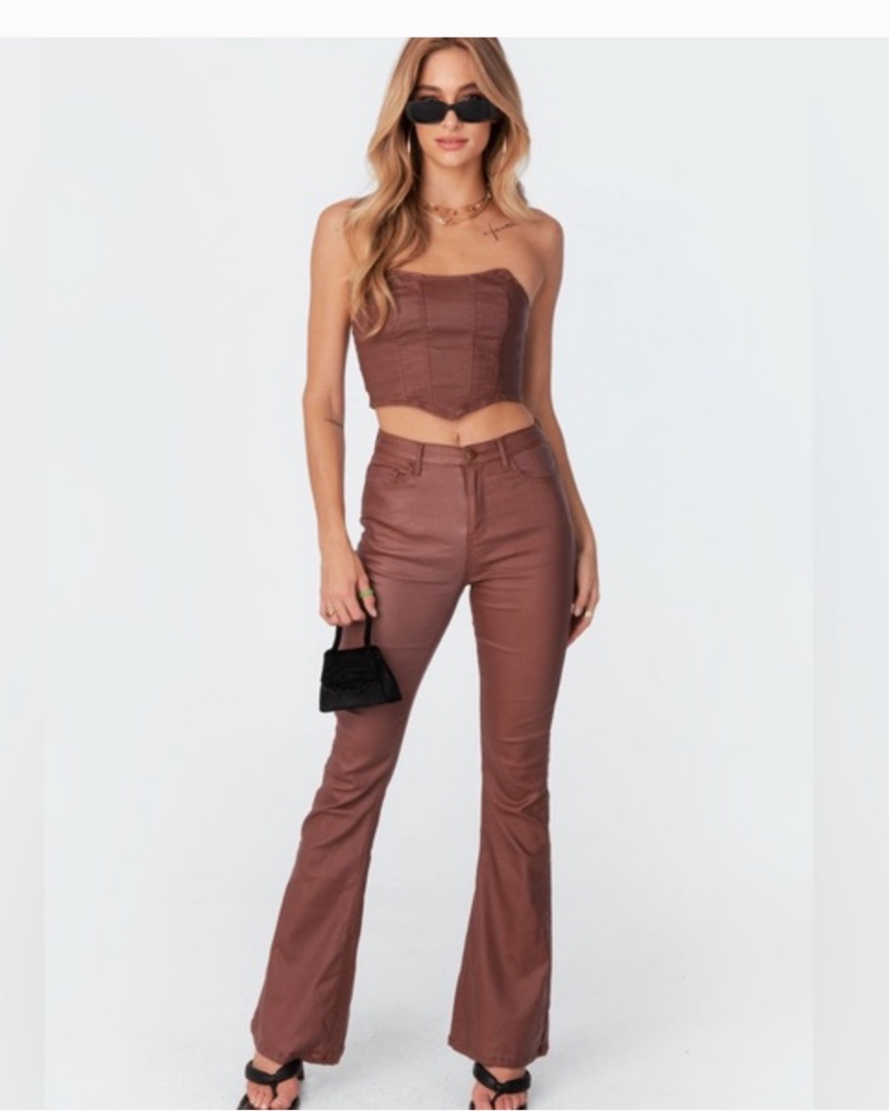 Faux Leather Pants And Corset Set by Edikted - Pickle