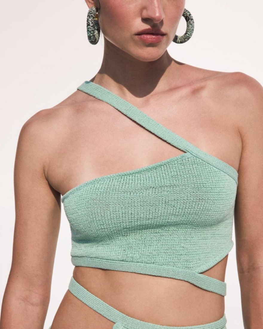 Cult Gaia sold out Sanura Knit Top in Aloe Green, perfect for a vacay! please handle with care :)