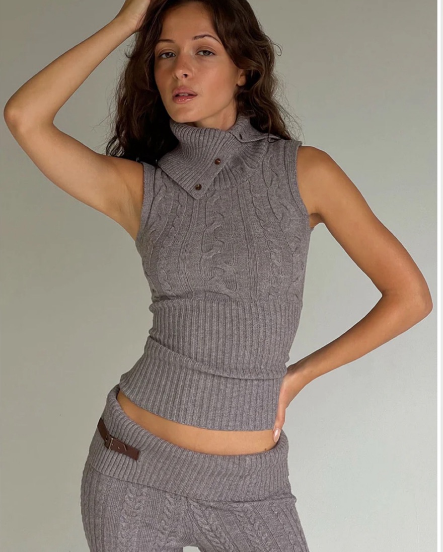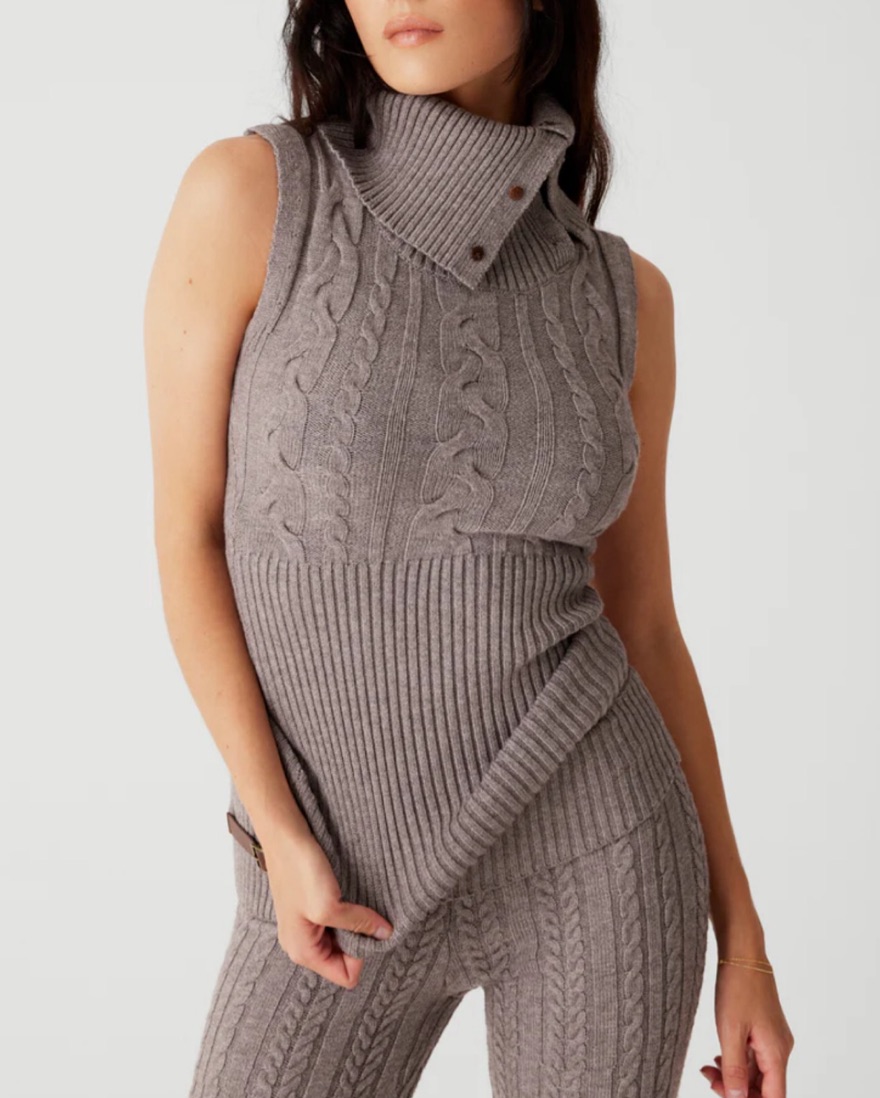 Frankies Bikinis Axel Cable Cloud Knit Sleevless Sweater