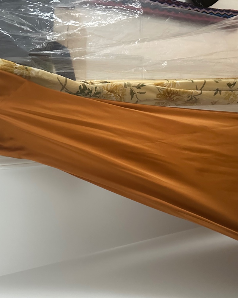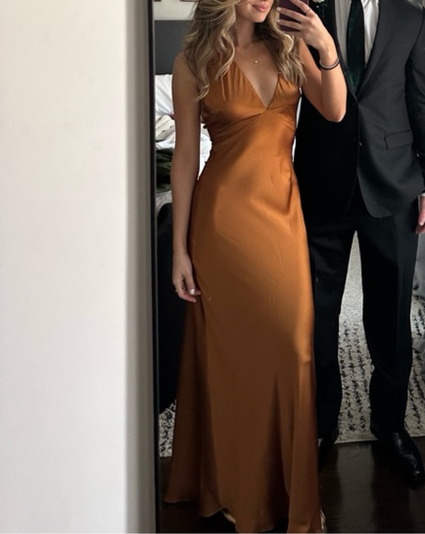 Worn once! Perfect for a wedding. Color is copper. Unfortunately small discoloration (pictured).