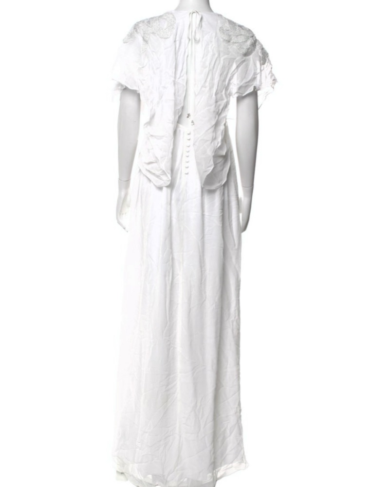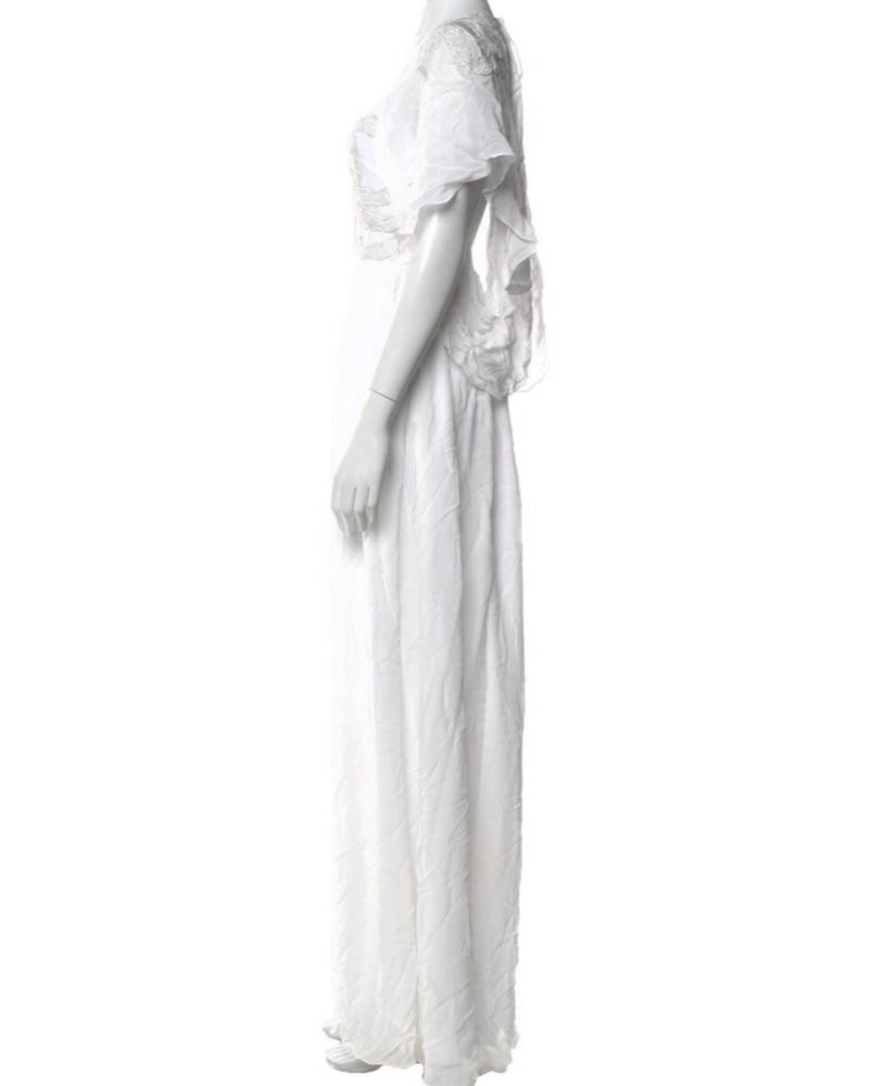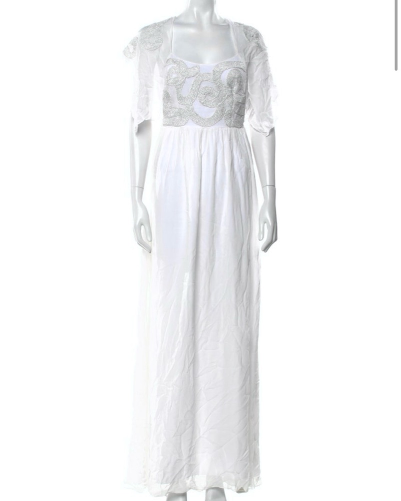 Brand New With Tags! Stunning Authentic Cavalli Bridal / Engagement Chic Maxi Dress. Size 2/XS/S. Adorned with Iconic Cavalli Snake Logo Silver Embroidery