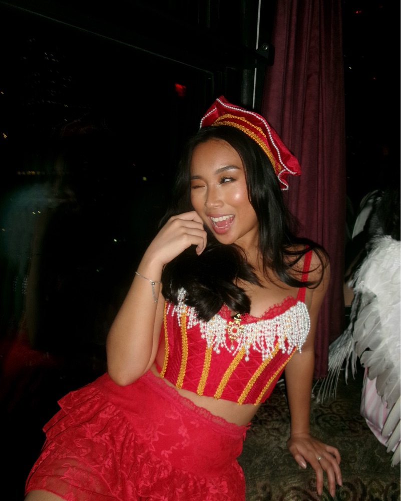 This stunning red sequin and lace ensemble is perfect for a Halloween night out! If you would like the gingerbread man costume too, please let me know and we can negotiate!