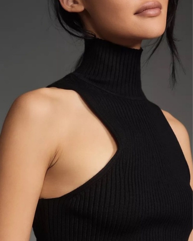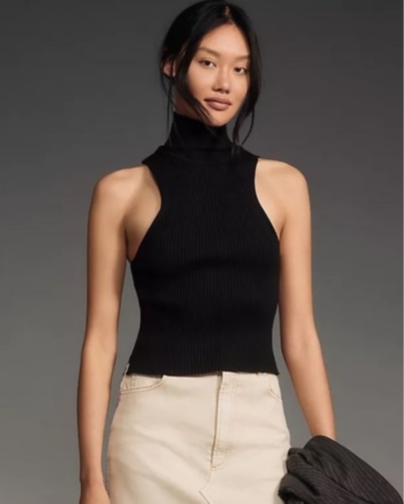 NWT Anthropologie Black PILCRO HIGH-NECK RIBBED SWEATER TANK Small
