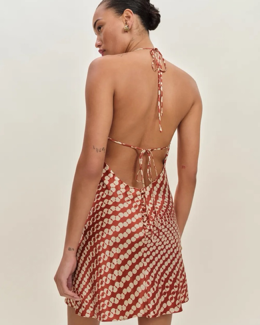 Reformation mini dress. Tie straps, halter neckline. 100% silk. DO NOT WASH - I will dry clean