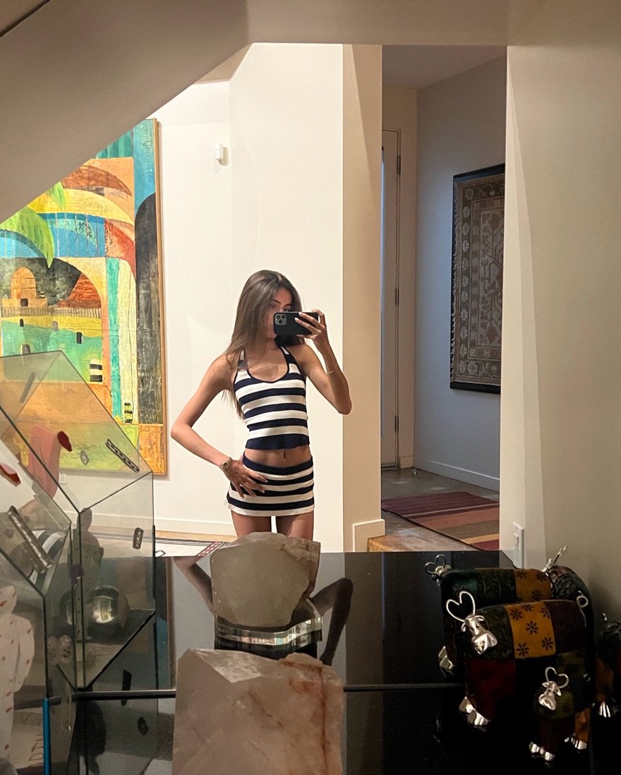 Halter top & mini skirt (with shorts) in sea stripe. Fits perfectly & is so comfortable with stretch and so so cute. Message me if you want to rent them separately