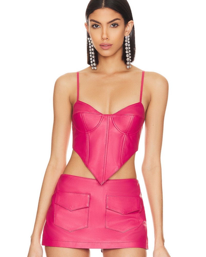 Adorable leather pink top in perfect condition with matching skirt available, can lower price if rent both pieces.