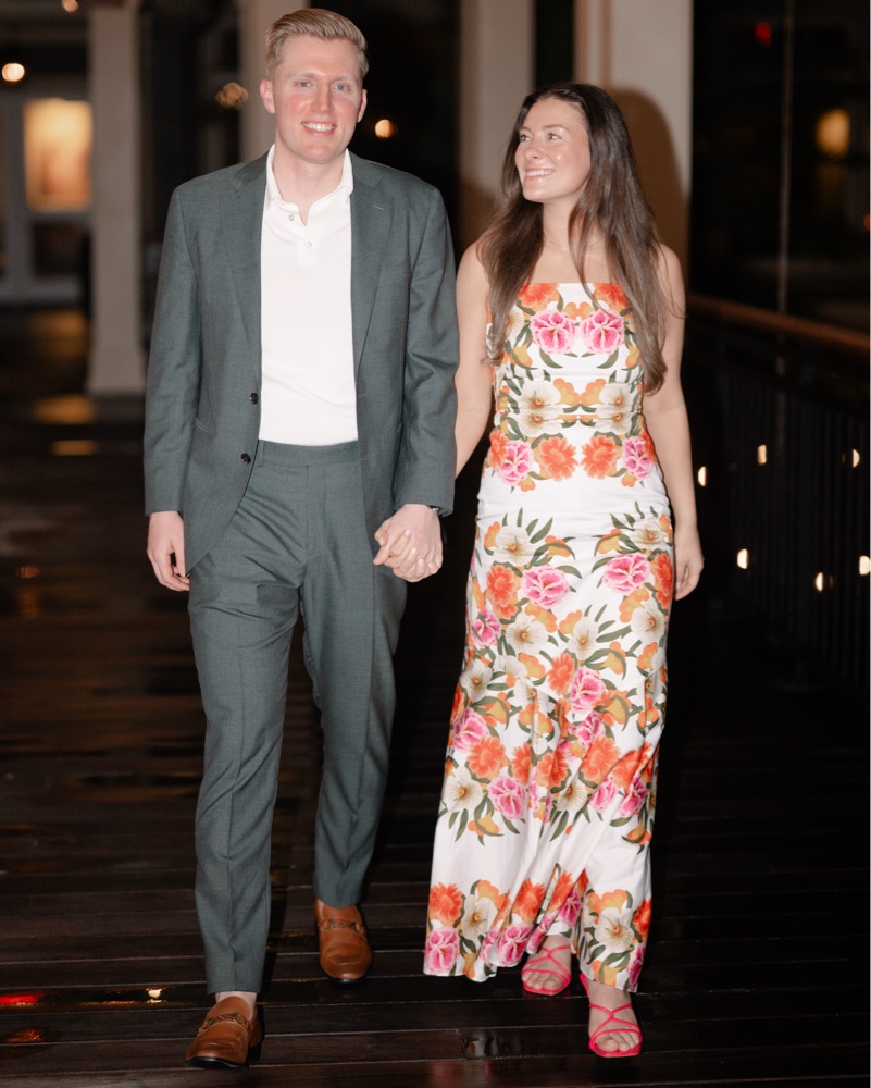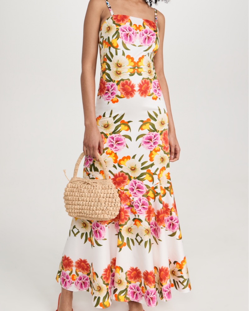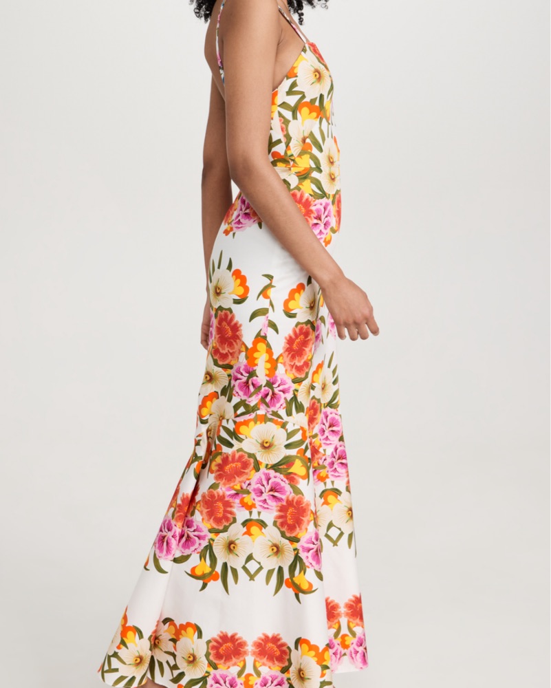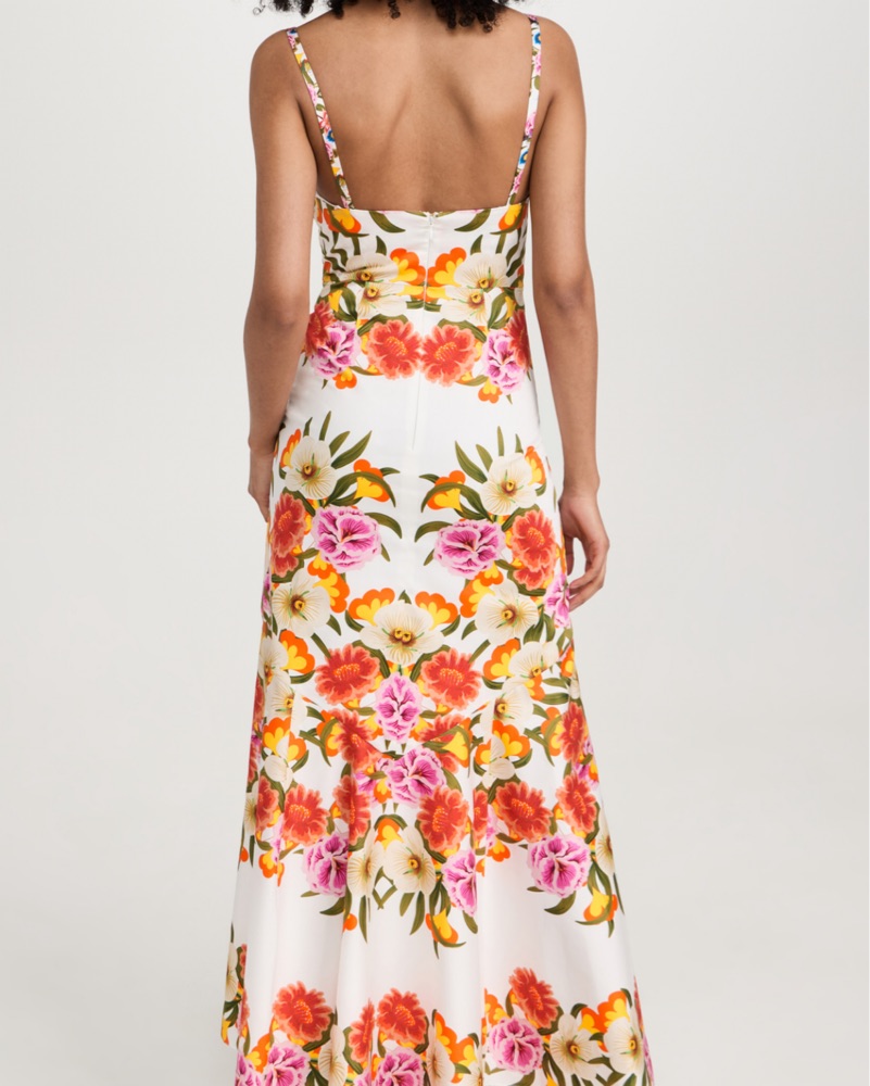 This stunning floral gown from Borgo de Nor is perfect for a special occasion. The vibrant colors and flowing silhouette create a sophisticated and elegant look.