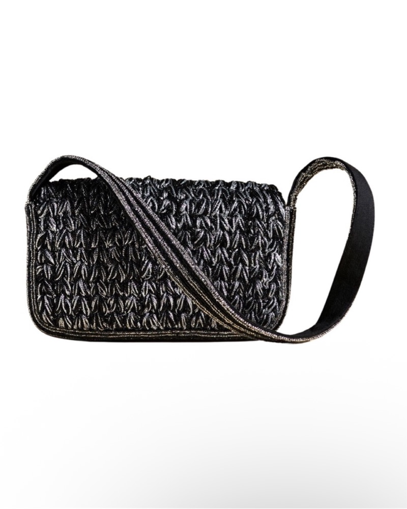 Black And Silver Woven Texture Shoulder Bag