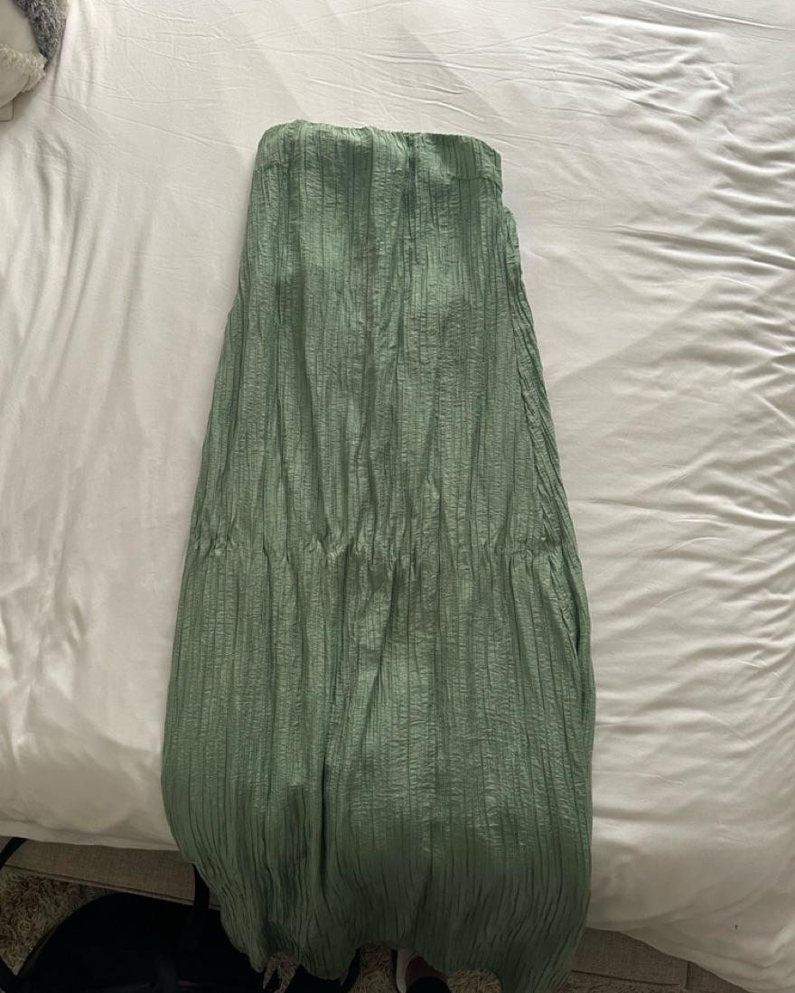 Sage Green Plisse Cutout Strapless Dress by Lulus - Pickle