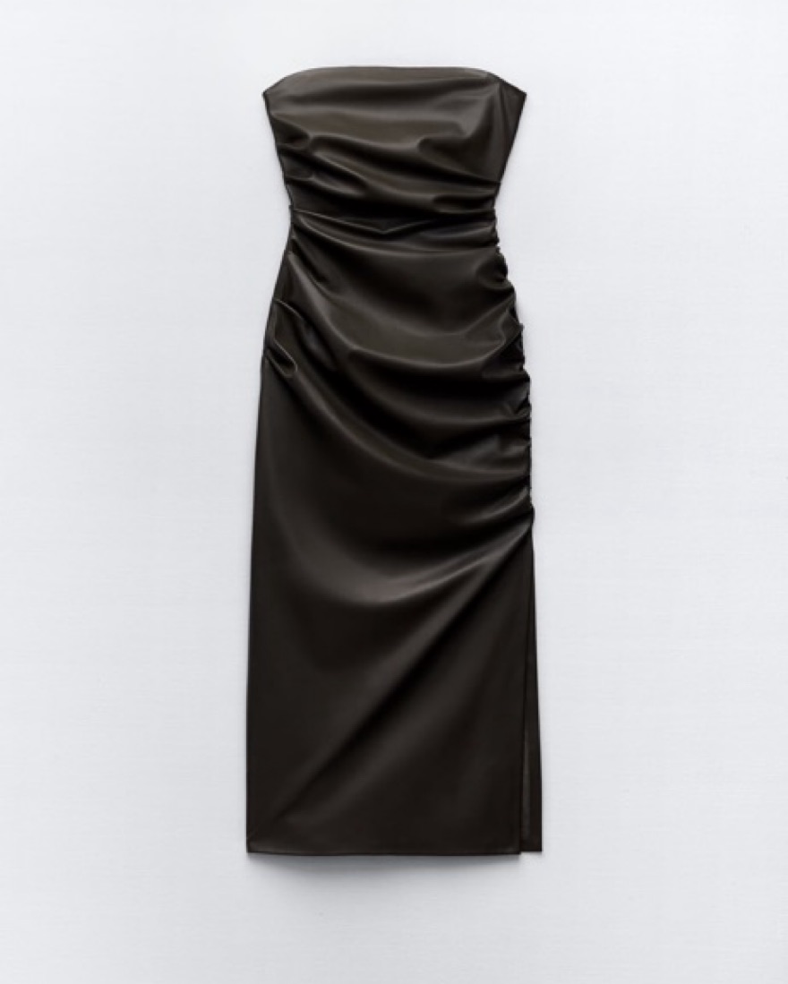 Zara Leather Dark Green Dress