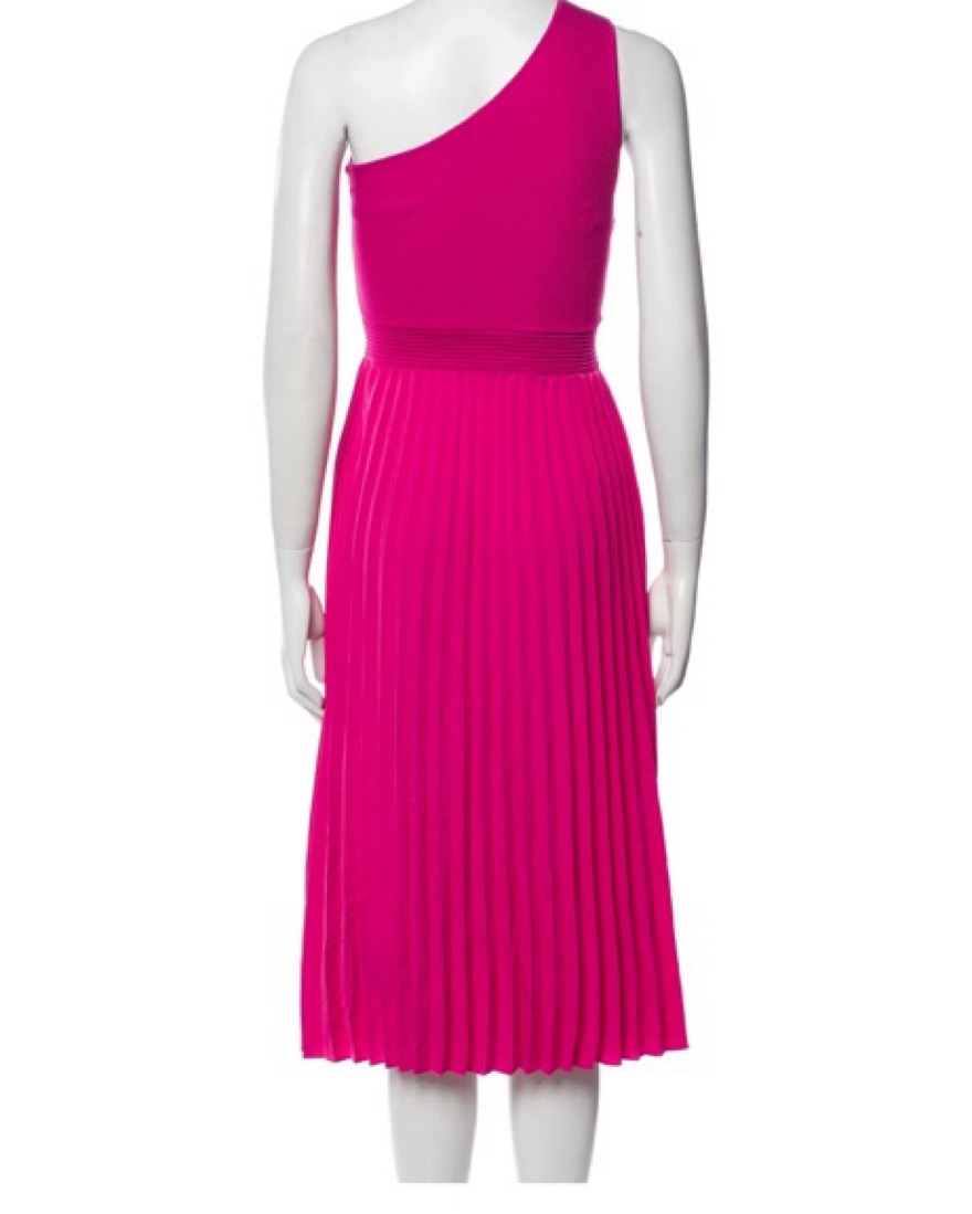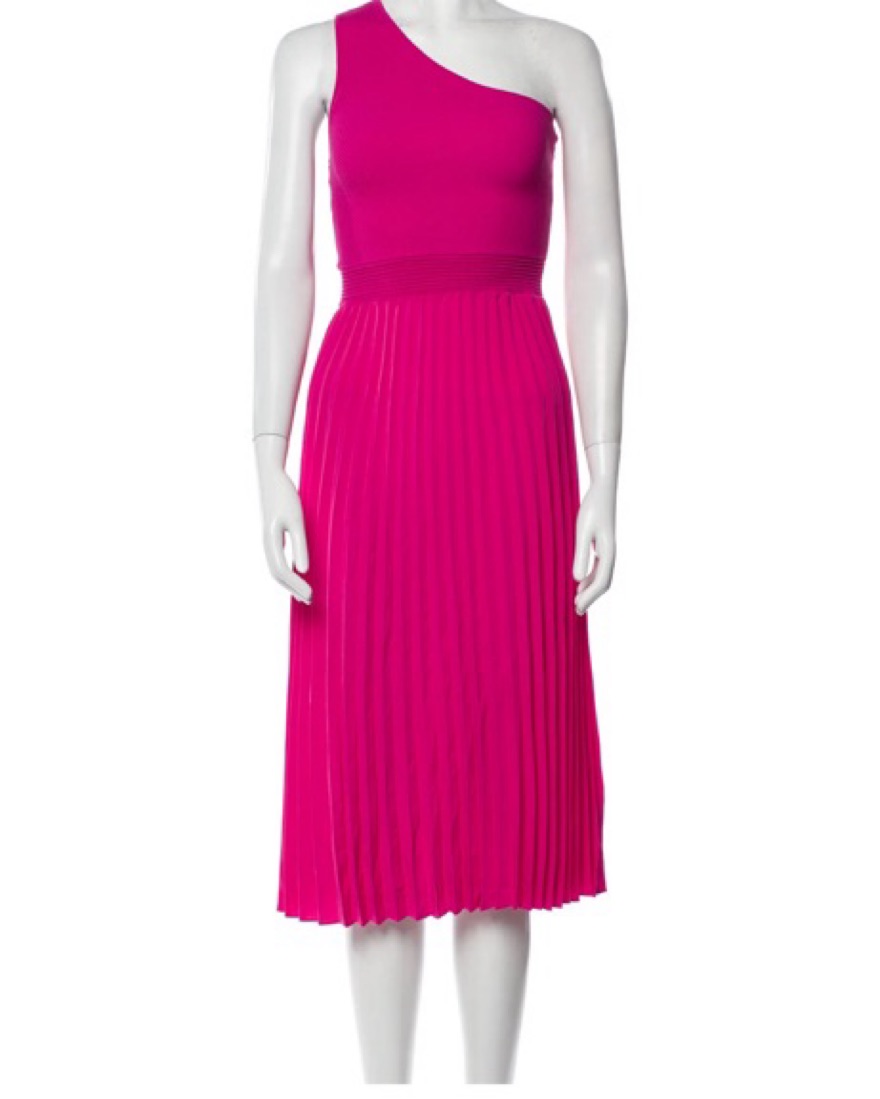 One shoulder A line midi dress, sweater material top and pleated skirt