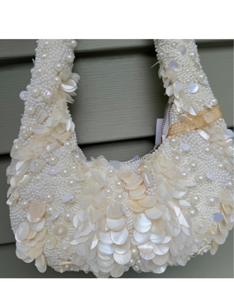 This stunning dress is perfect for a formal event or special occasion. The intricate pearl and sequin embellishments create a luxurious and eye-catching look.