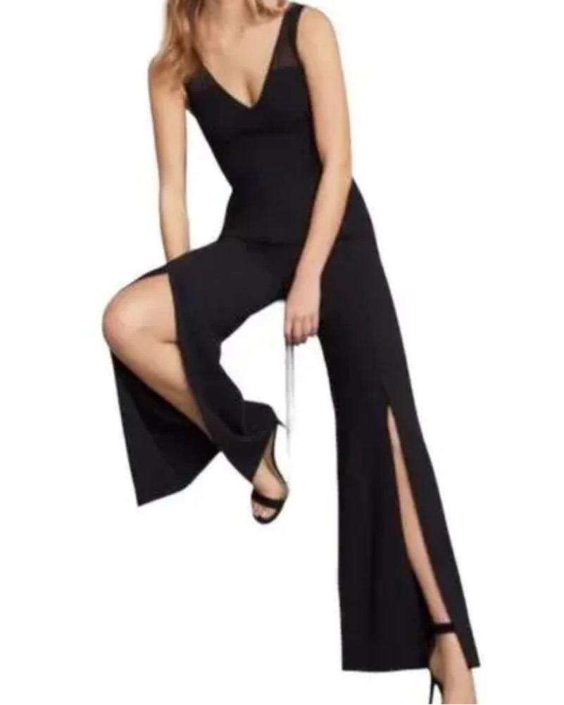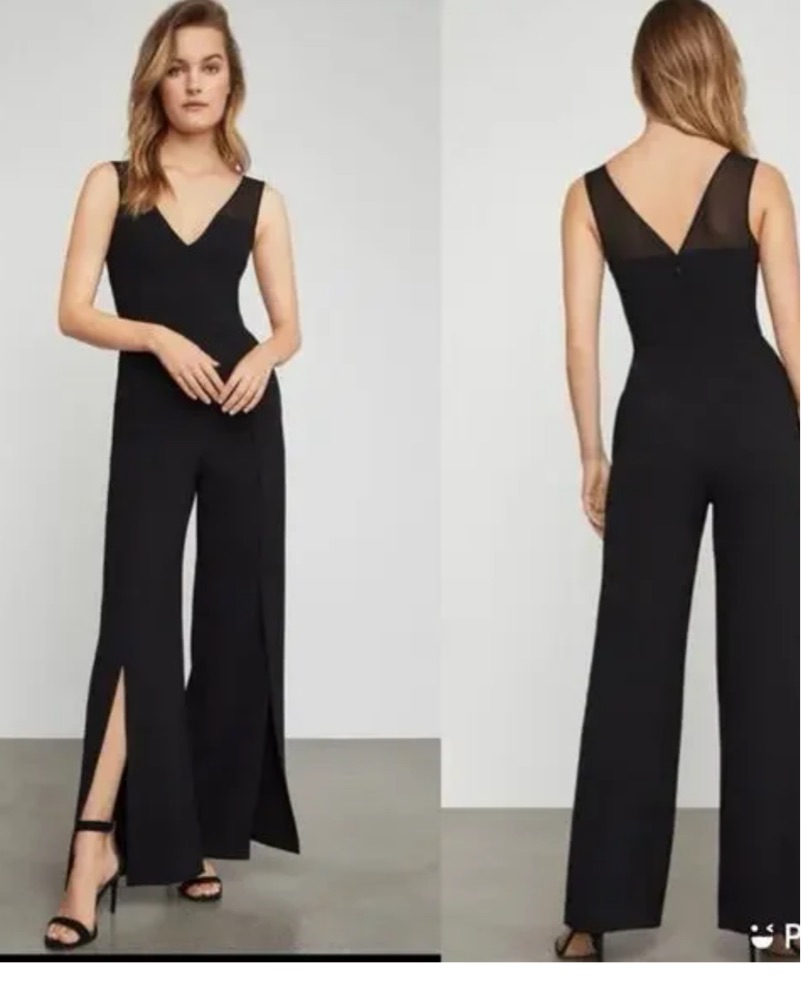 BCBGMAXAZRIA sleeveless jumpsuit with split hem wide leg pant