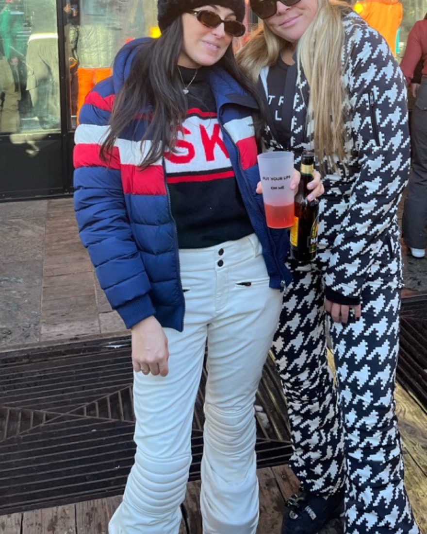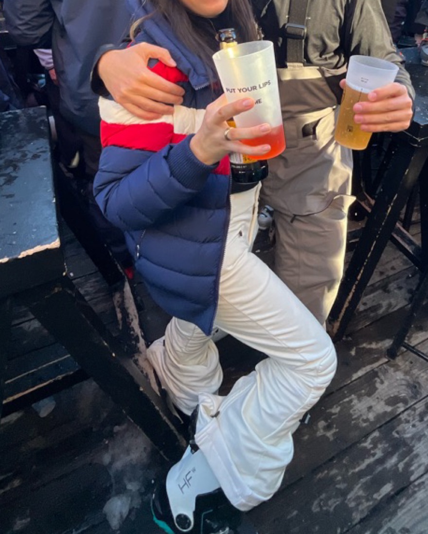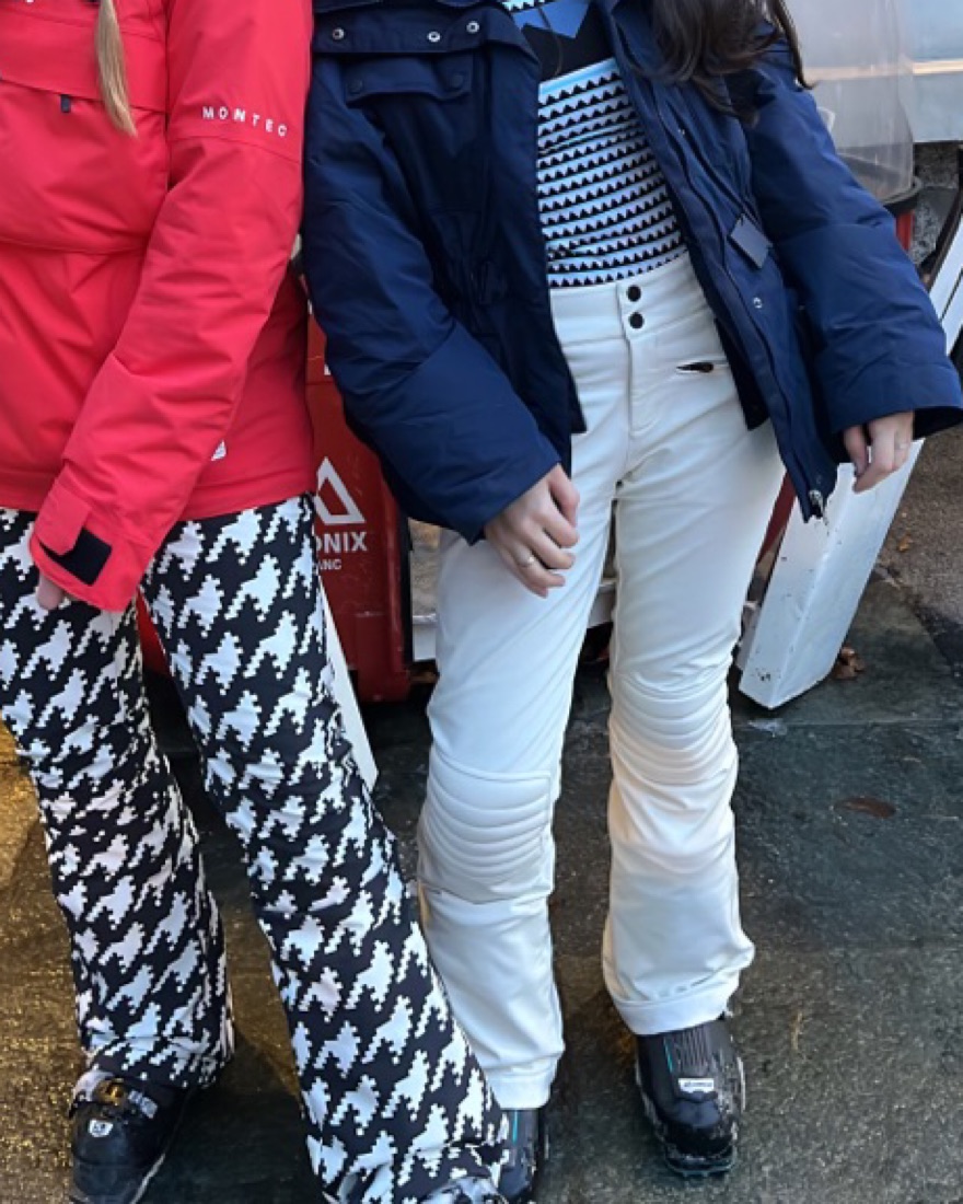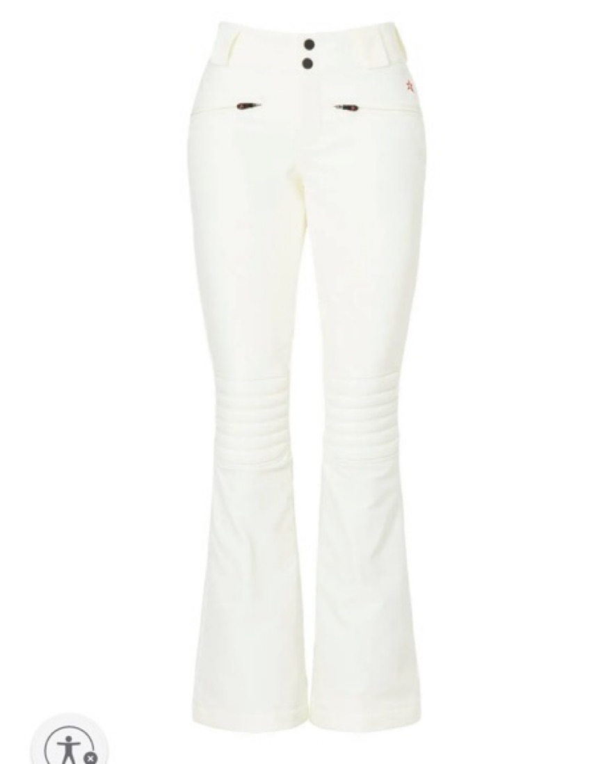 White Aurora Flare Ski Pants. These are great ski pants, so warm. There is a very very small tear in the backside bottom of the pant from the boots