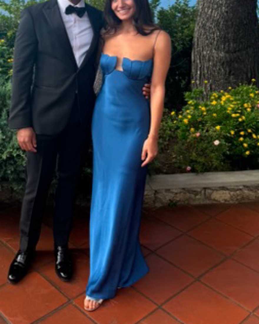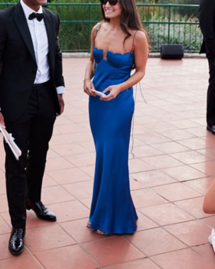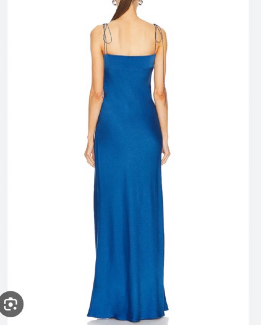 Silk maxi dress with adjustable ties. Hemmed to hit at ankle length on 5’2” frame.
