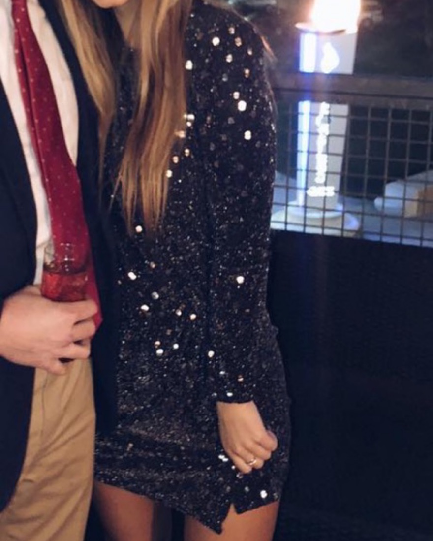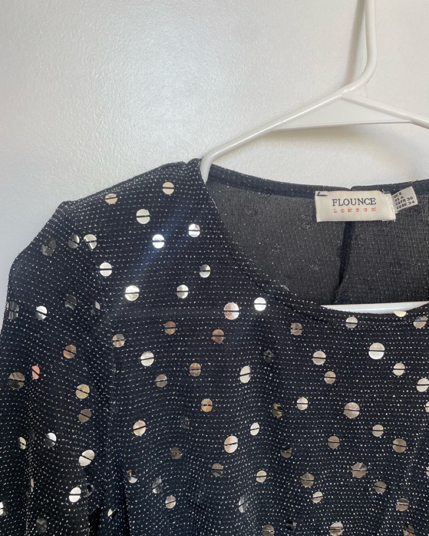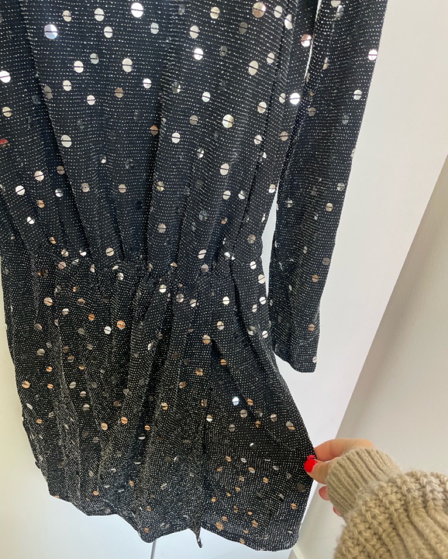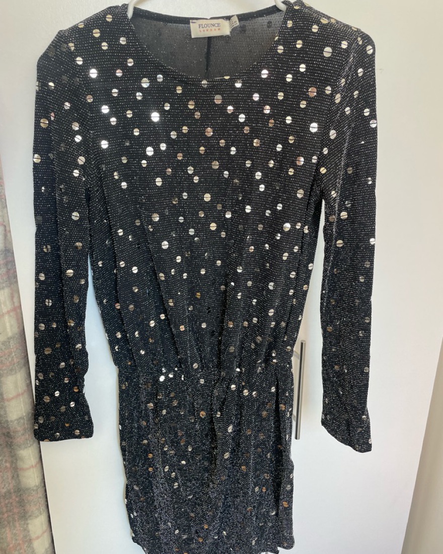 Metal colored sequin mini dress with wrap skirt and shoulder pads - size 4 (fits small) by Flounce London