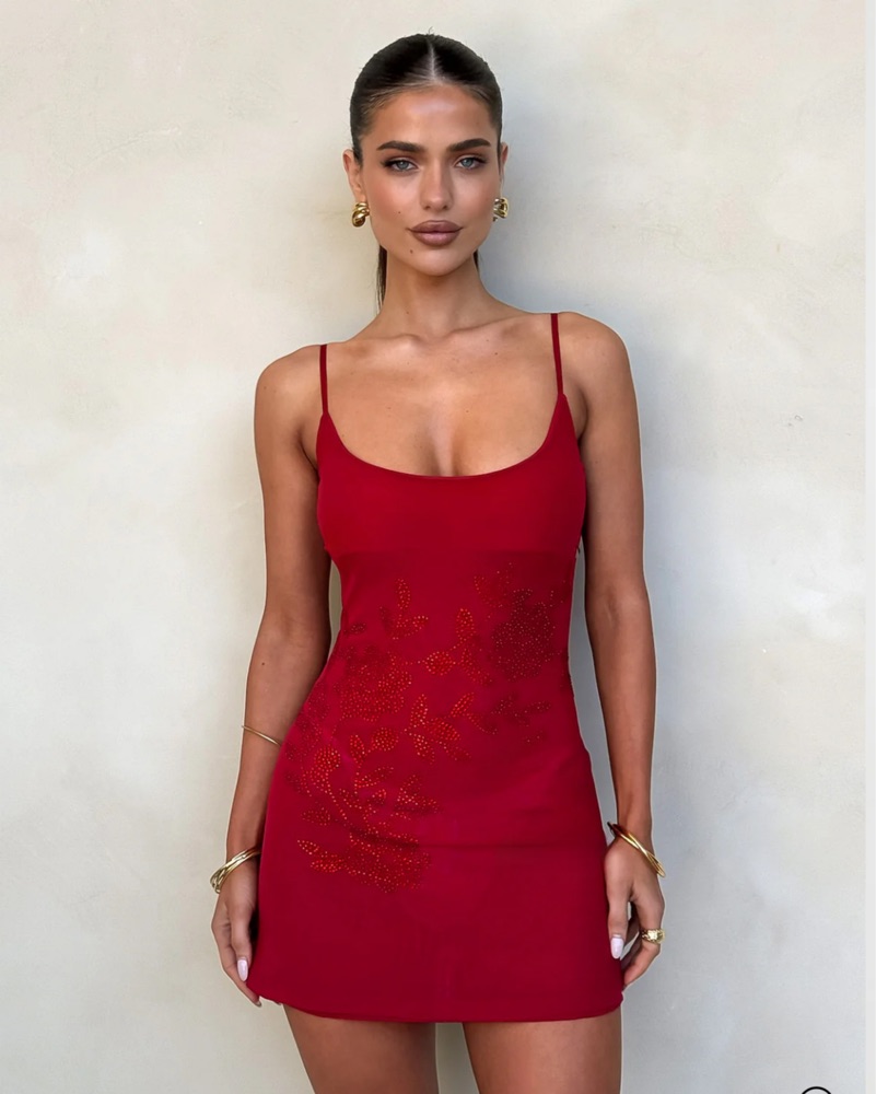 Tiger Mist Red Embellished Dress by Tiger Mist - Pickle