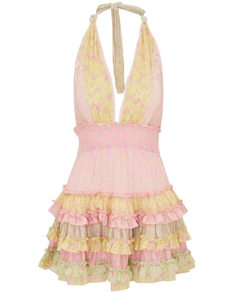Loveshackfancy Ruffle Pink Halter Dress by LoveShackFancy - Pickle