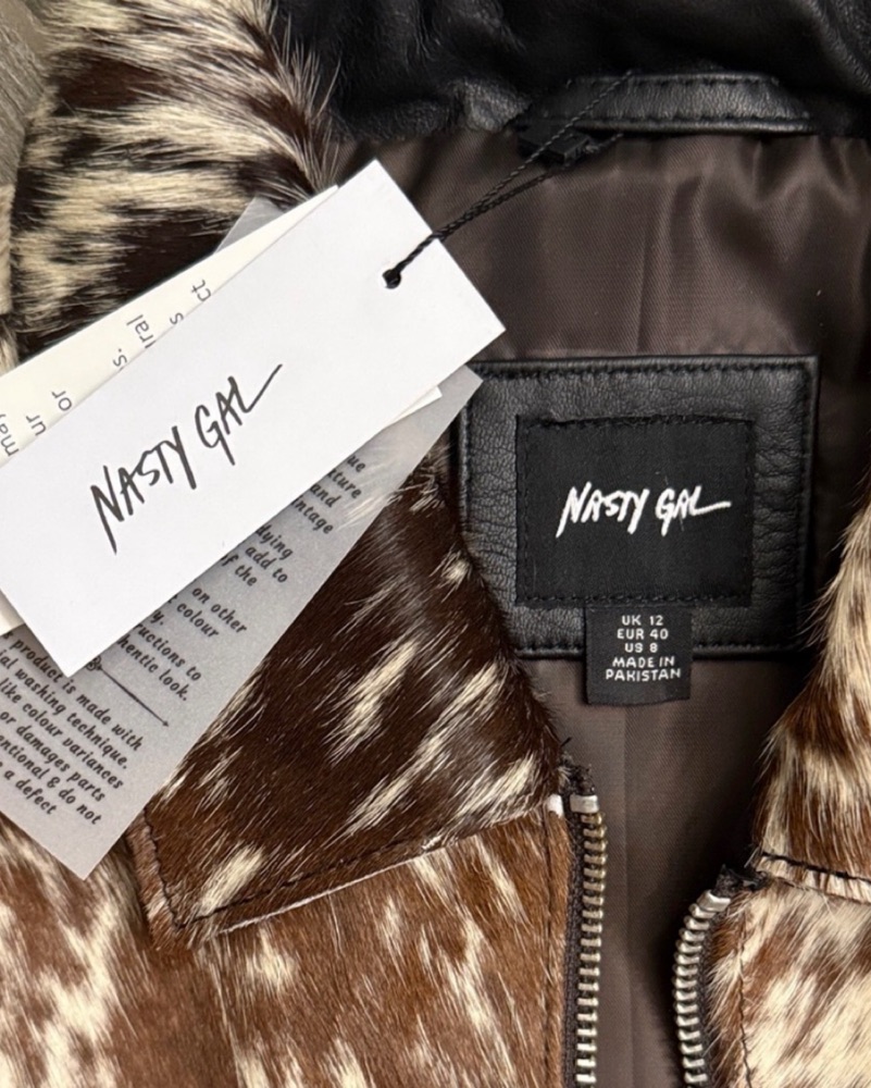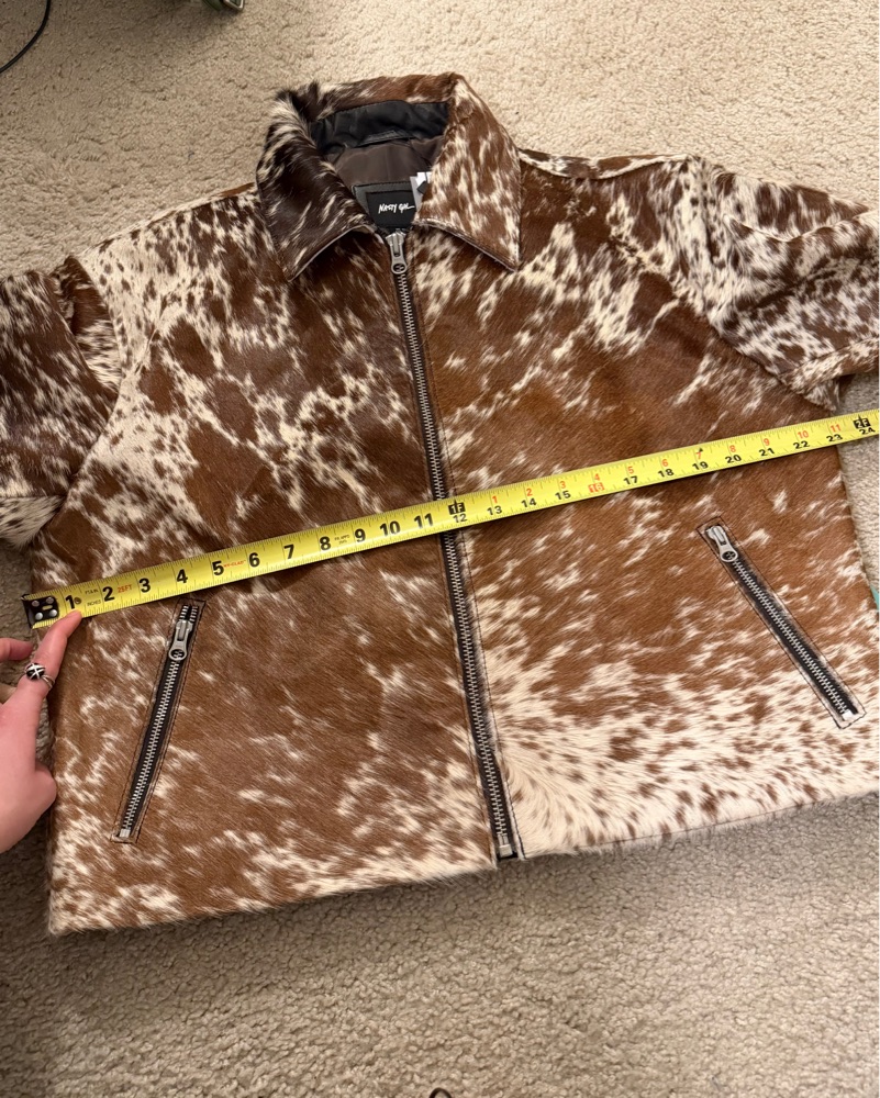 The viral Nasty Gal genuine cow hide leather jacket! Brand new condition. Size US 8, could fit up to a L see measurements in photos. Haven’t worn out yet so still has tags but I’ll remove prior to sending! Dry clean only, please be kind to this baby it’s such a great piece! :)