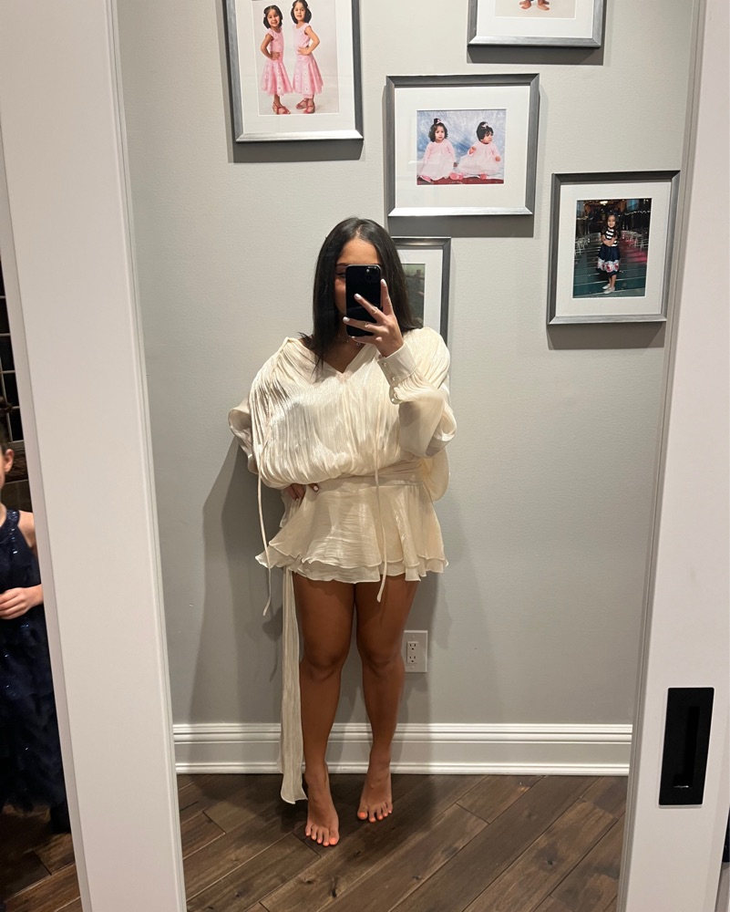 Embrace effortless elegance in this chic white pleated romper. Perfect for a summer soirée or a night out on the town.