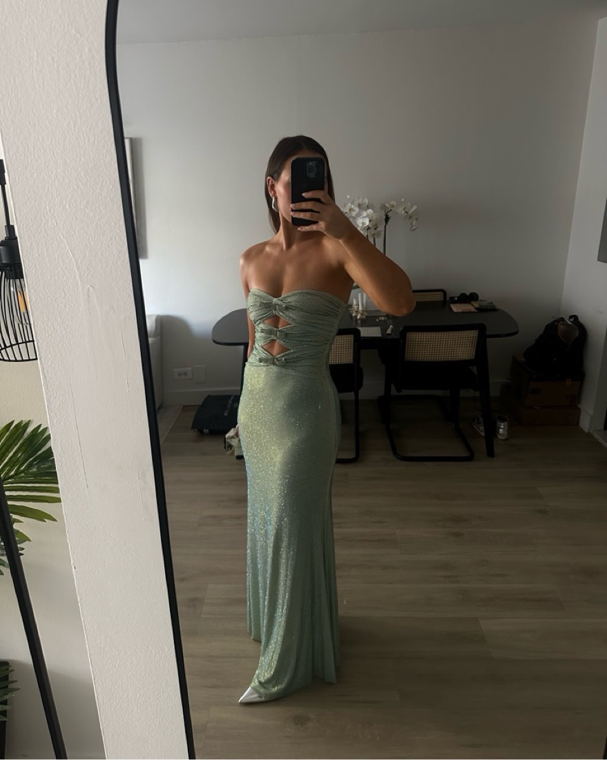Rhinestone Strapless Gown in Green by Self Portrait - Pickle