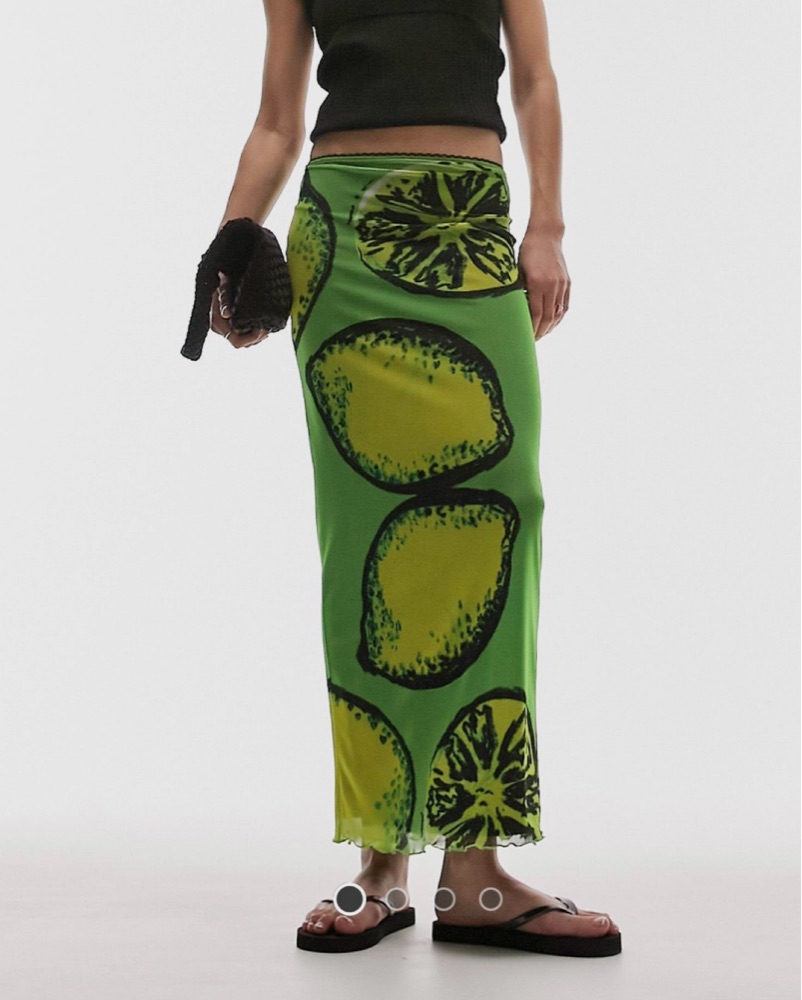 Lemon Print Green Midi Skirt by Topshop - Pickle