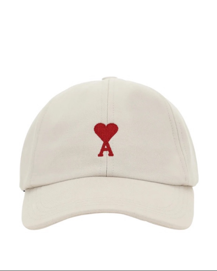 Ami Paris Ami de Coeur Logo Embroidered Baseball Cap, Light Cream/White with Red logo, perfect condition.