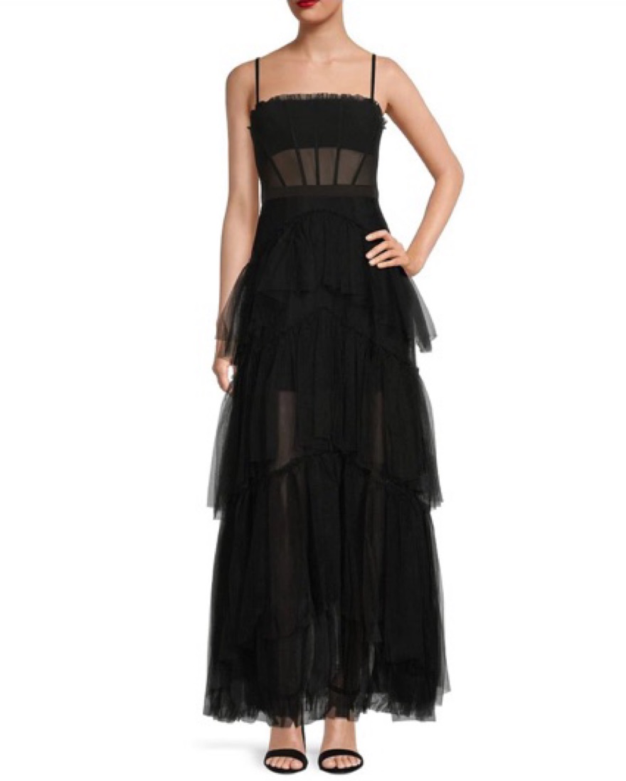 Betsy & Adam Black Tulle Ruffle Strapless Gown (also listed in red!!)