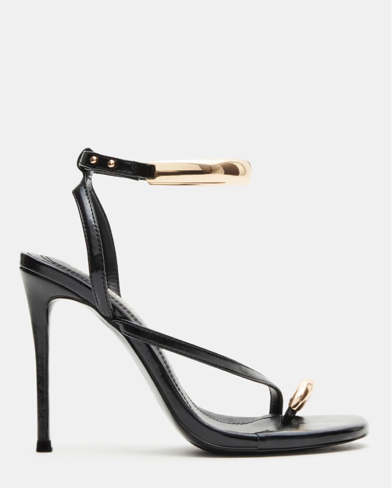 Step into style with the TIA stiletto heel. With daring gold hardware accents and a strappy design, this shoe will elevate any outfit. Unleash your boldness and conquer the day in these statement heels!