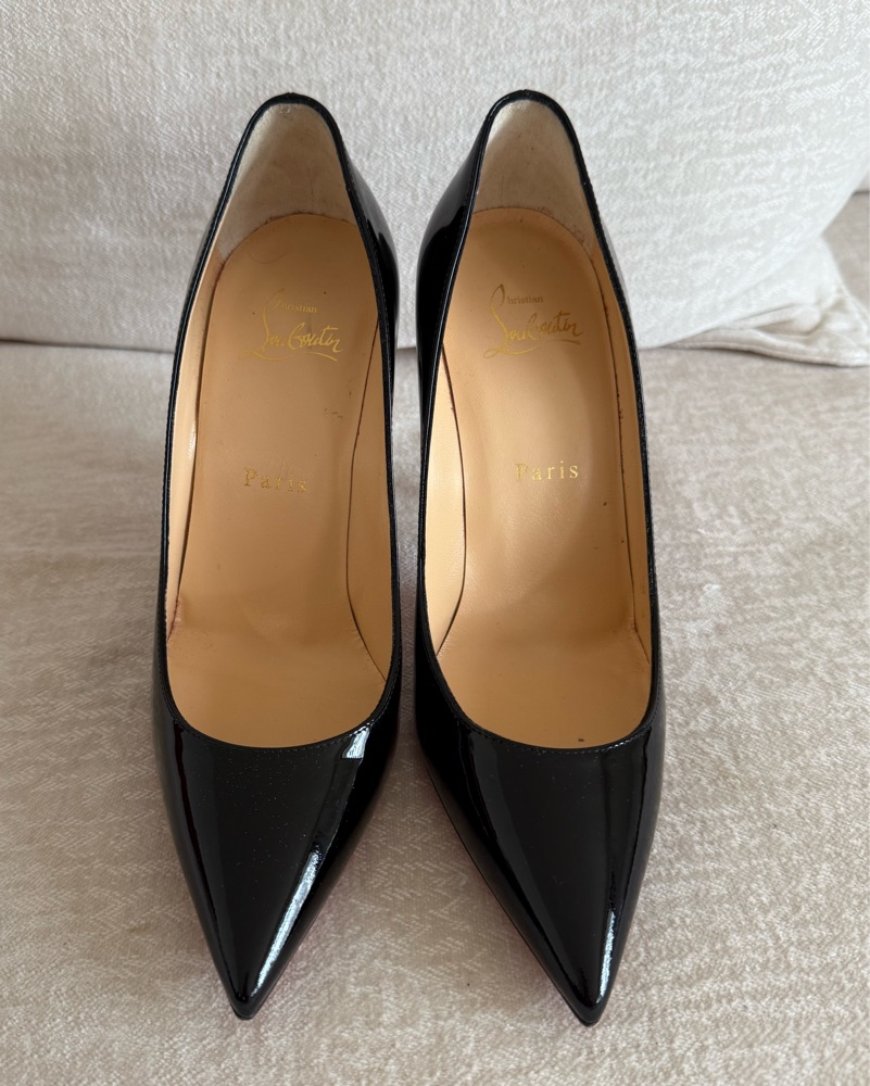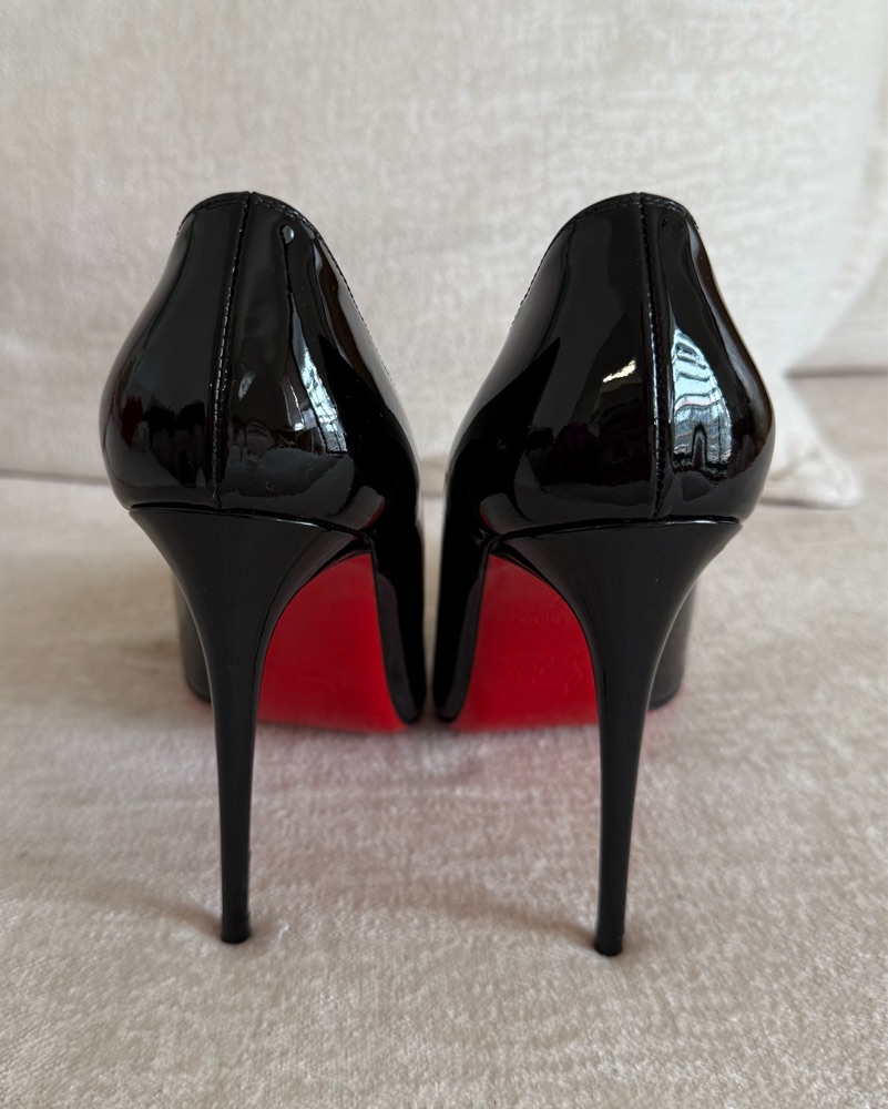 Black patent leather red bottoms. Classic pointed toe stilettos. EU 37. Fits 6.5/7