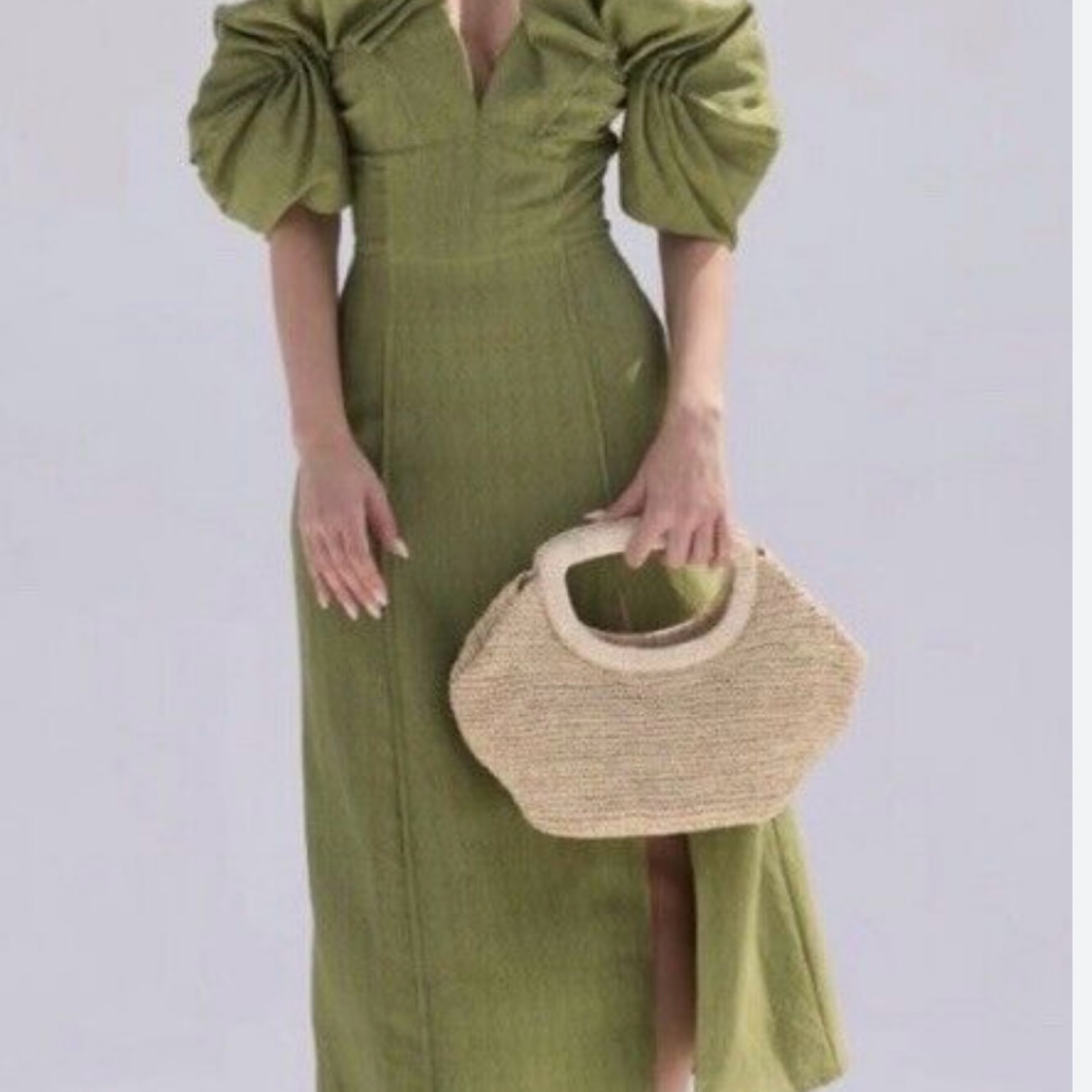 Green woven long muna dress. Only worn once to a wedding. Very flattering