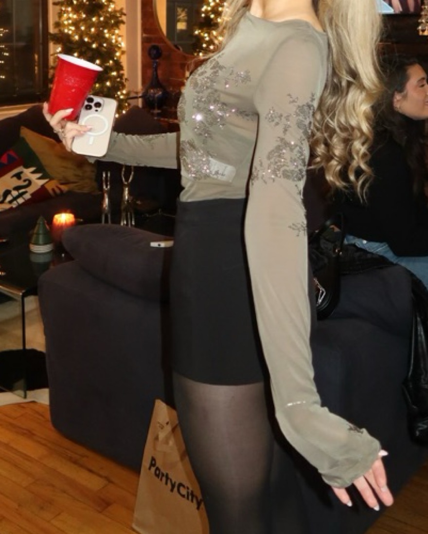 House Of CB embellished Semishear Mesh Top in Olive, size XS, only worn once