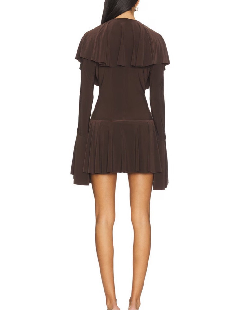 Norma Kamali Deep V Brown Ruffle Dress