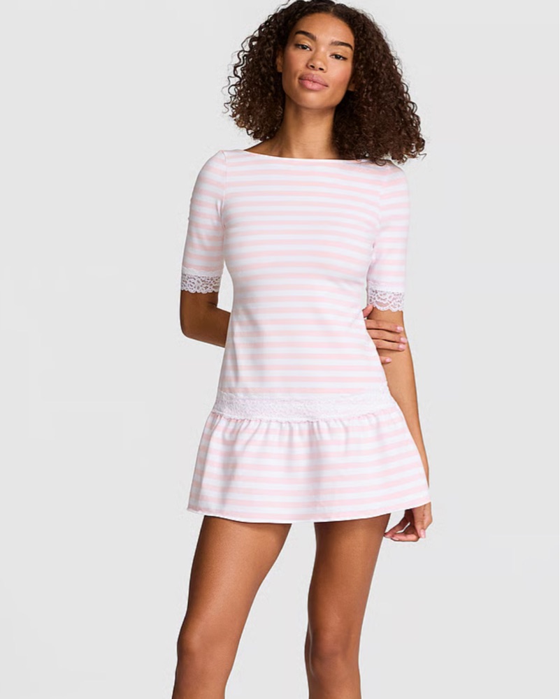 This sweet drop-waist Dress is crafted from a comfy cotton-modal blend and features a flirty, flouncy Skirt finished with a dainty lace trim. Oooh—it’s twirling time.