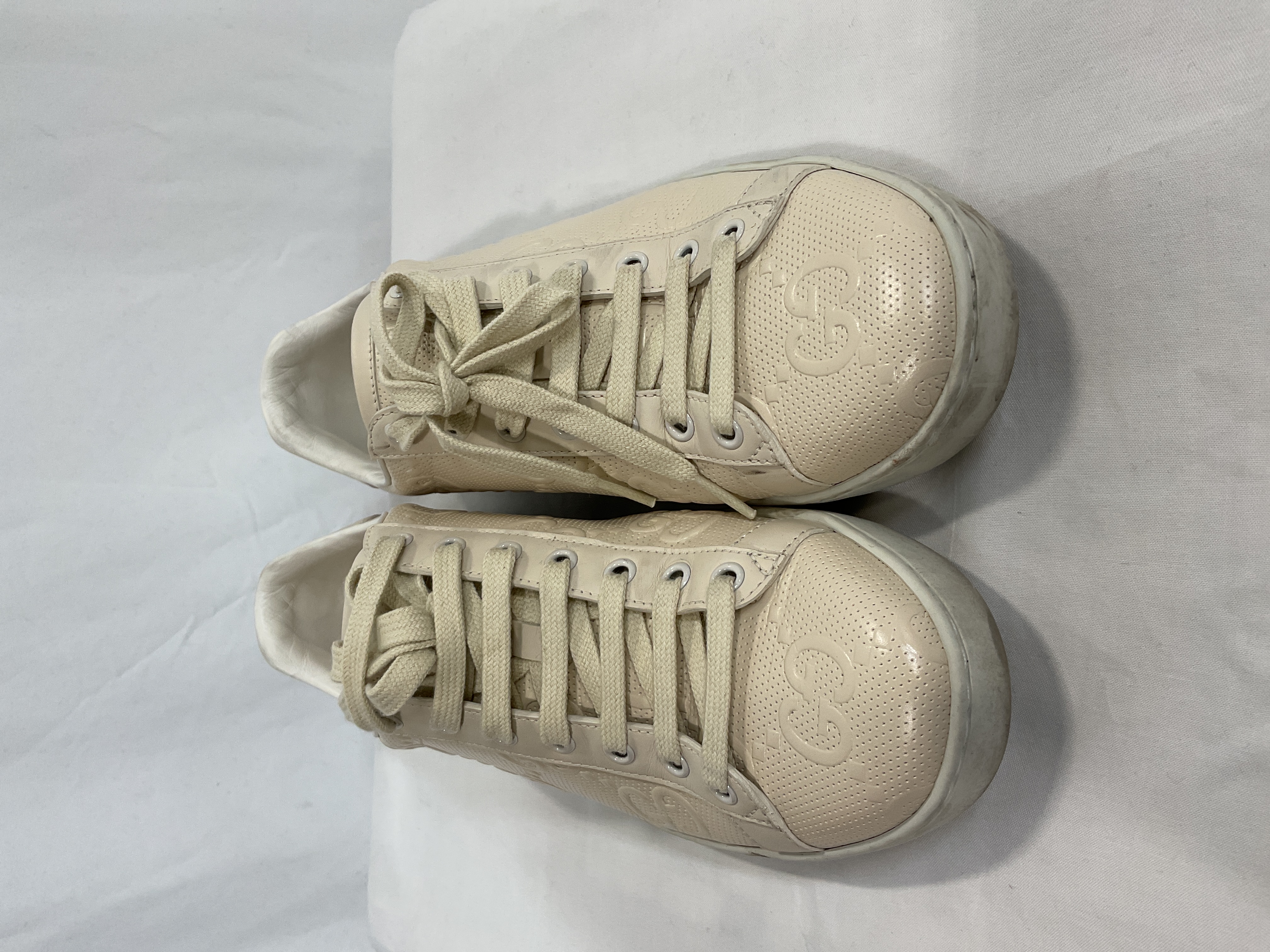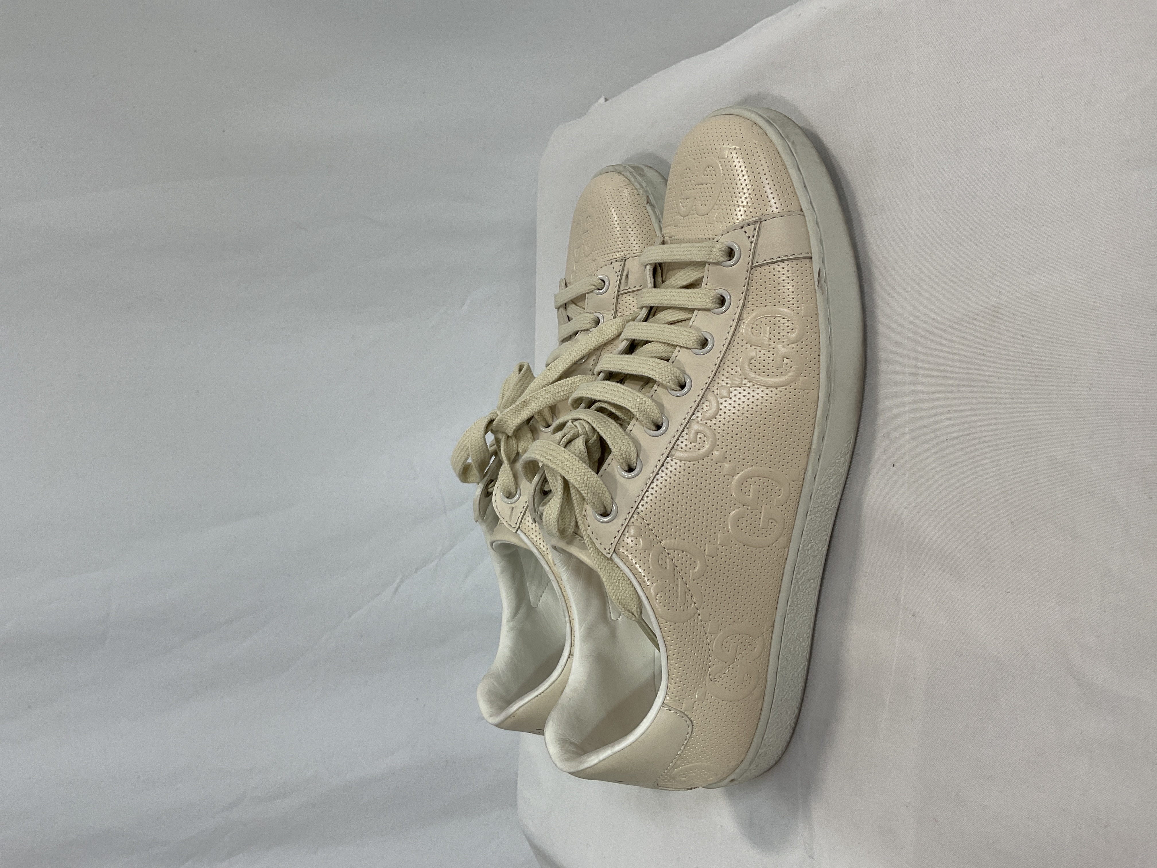 Iconic white leather with signature embossed detail elevates any casual look. Pairs perfectly with jeans, dresses, or athleisure for effortless luxury.