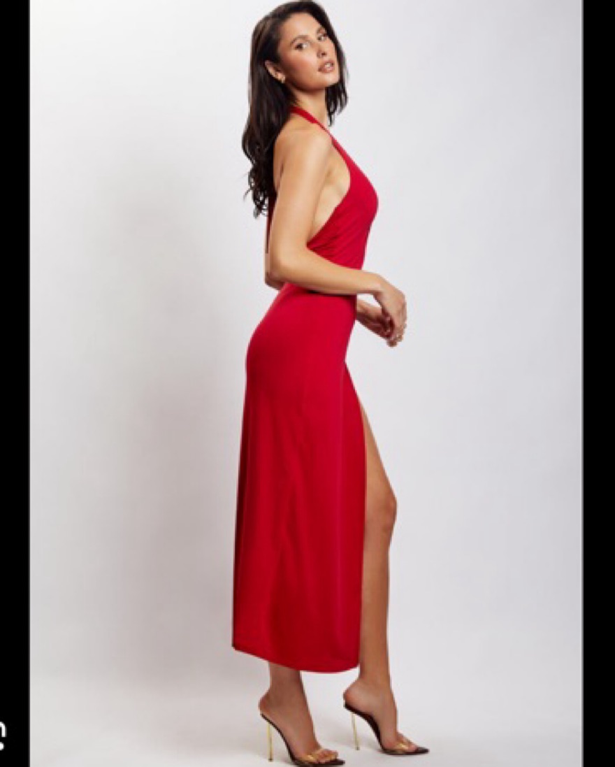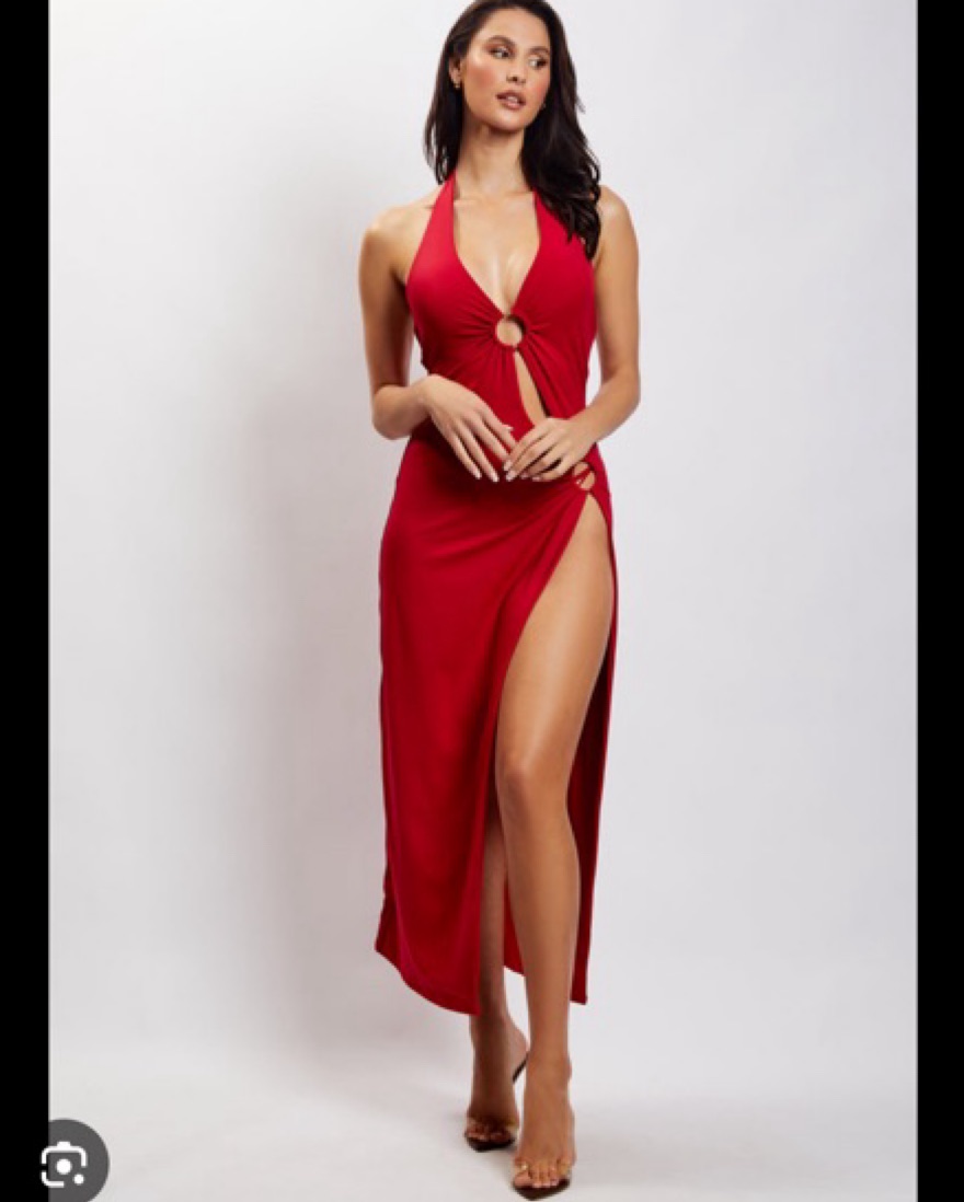Meshki Anika O Ring Halter Midi Dress - by Meshki - Pickle