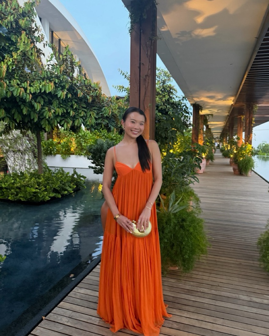 Leslie Amon Carioca dress (XS). Stunning orange flowy maxi dress. Perfect for vacation or a wedding / nice event! Material is very delicate so must be very careful not to snag and of the hem