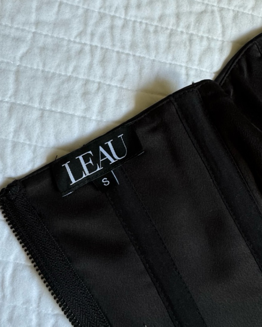 LEAU SPHYNX SATIN CORSET TOP (S) (BLACK)