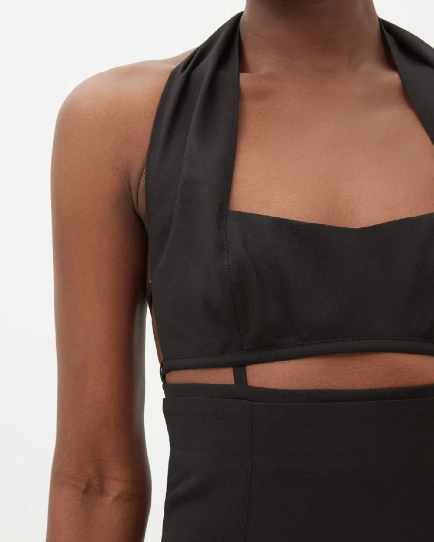 Jacquemus Liamo cutout halter neck mini black dress. Material is a lightweight crepe material.