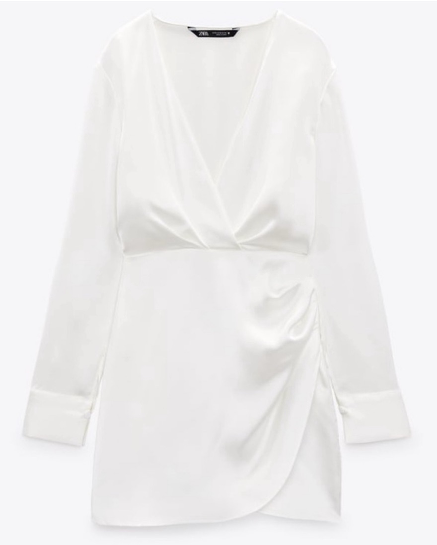 Zara White Satin Long-Sleeve Dress Mini