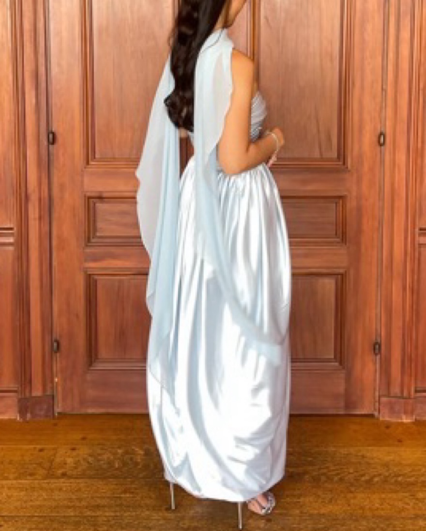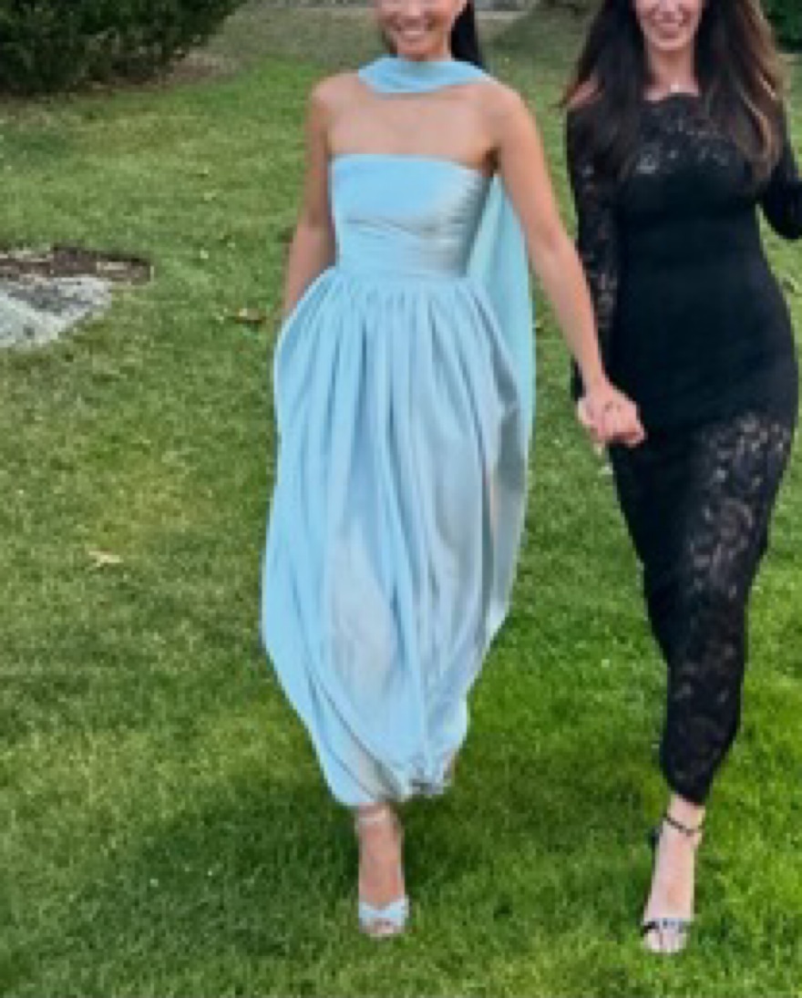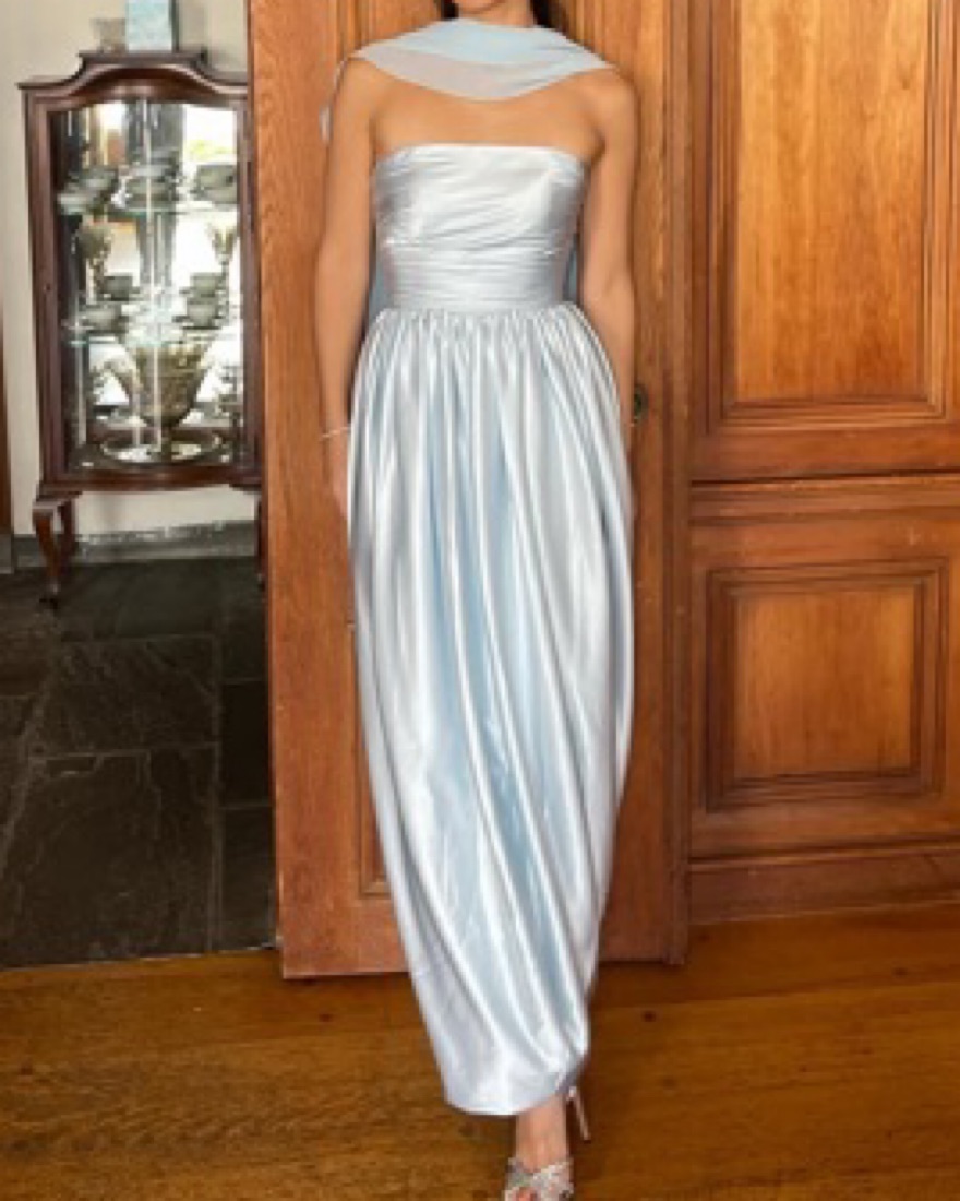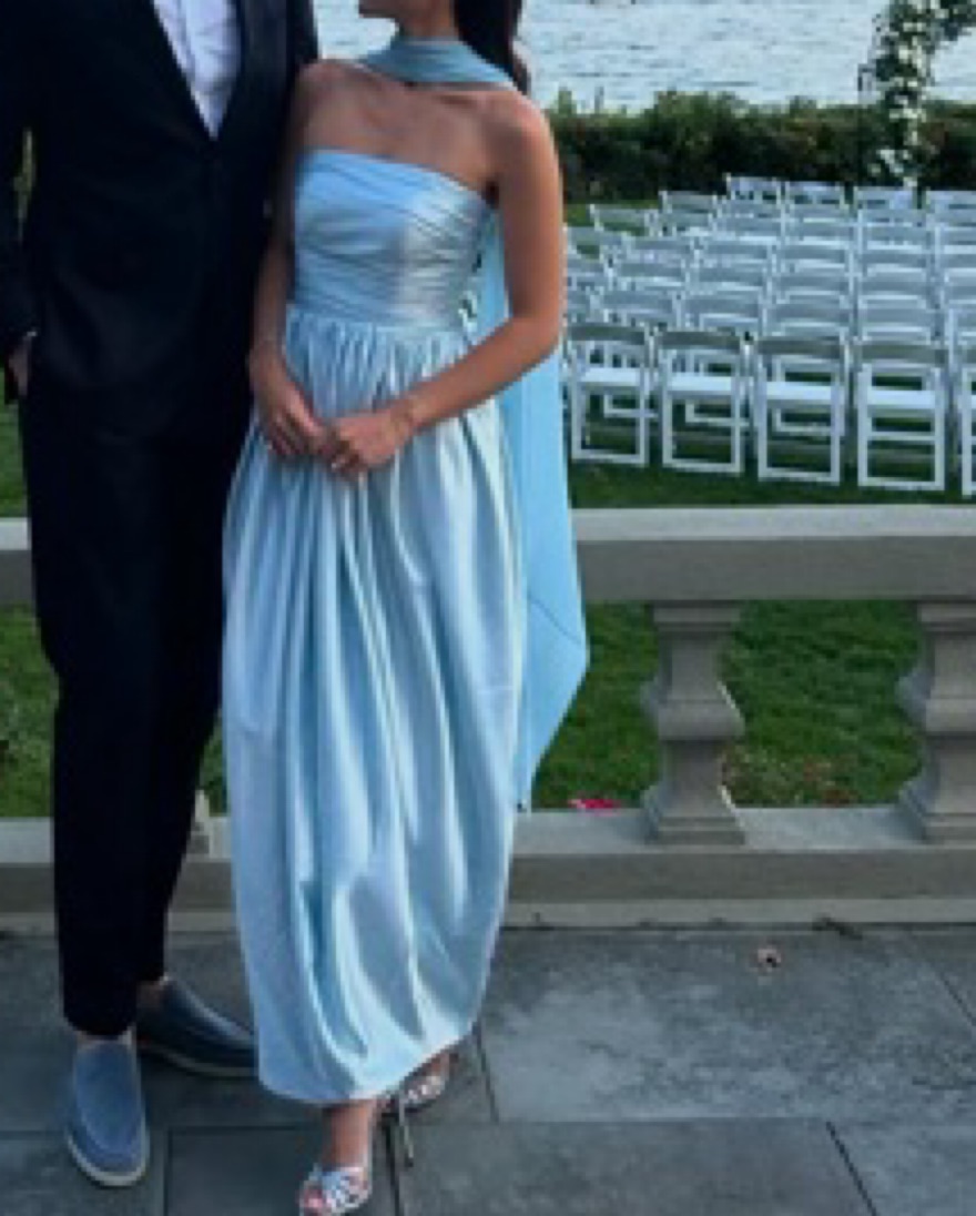 Stunning light blue satin gown perfect for a formal event or special occasion. Purchased directly from influencer claudia Ali and I never got a chance to wear it. Please dry clean before returning.