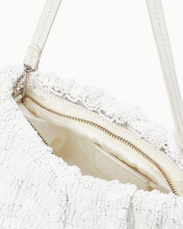 Beaded Bean Bag - White Cream Swirl by Staud - Pickle